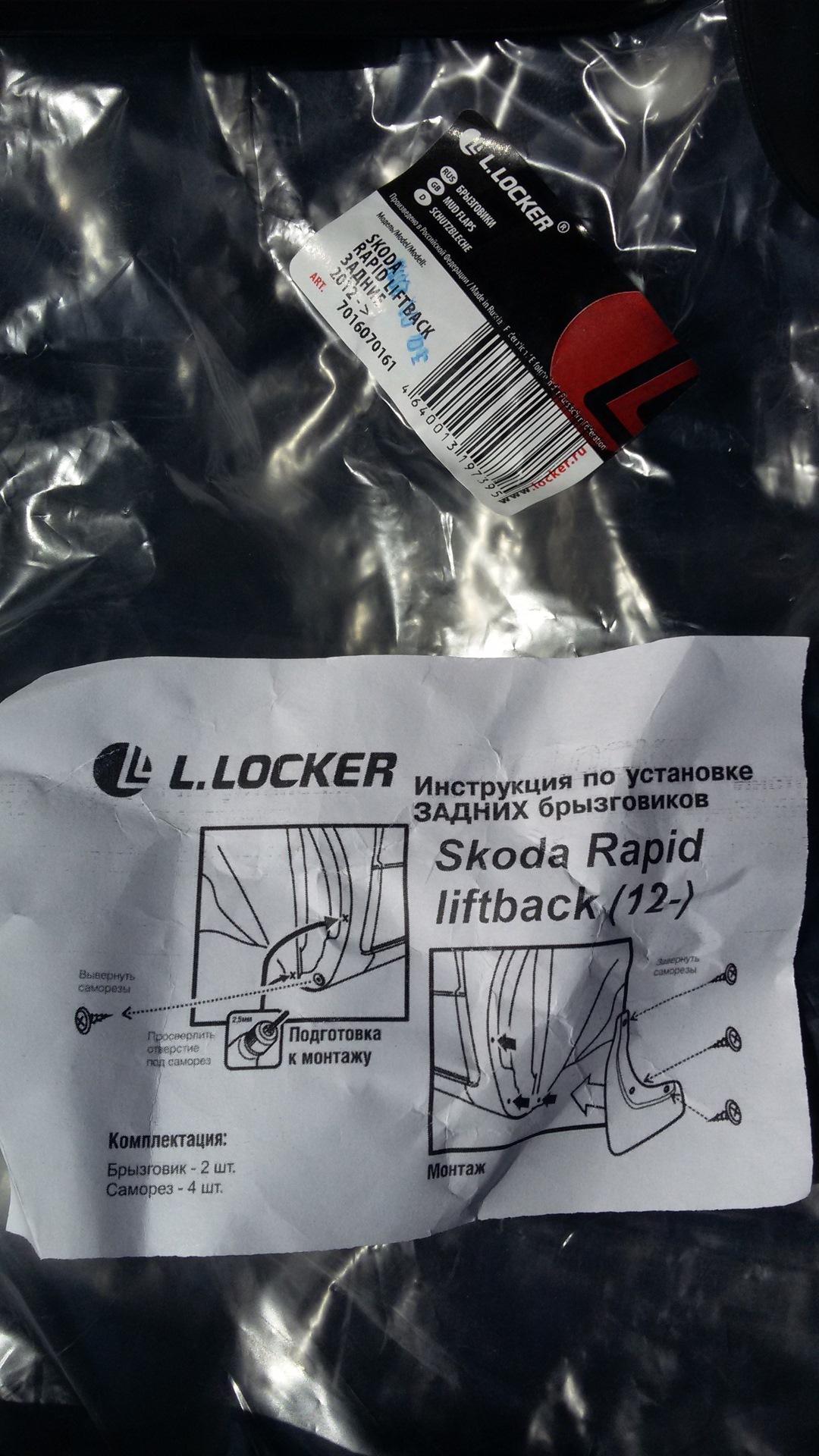 Начал вкручивать задние. Увидел, что на каждом брызговике свой номер есть, мож кто отдельно будет заказывать. На передние только правый (фото выше) сфотографировал.