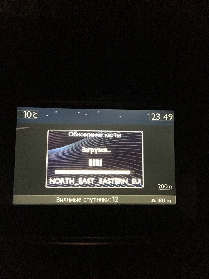 6. Затем вставляем флэшку с картами — и обновляемся. Выскочит предупреждение, что глушить машину нельзя. Поэтому лучше всего совместить установку — с длительными поездками. Так как одна карта ставится минут 20 примерно. А их там вроде 9. Можно сразу все не ставить.