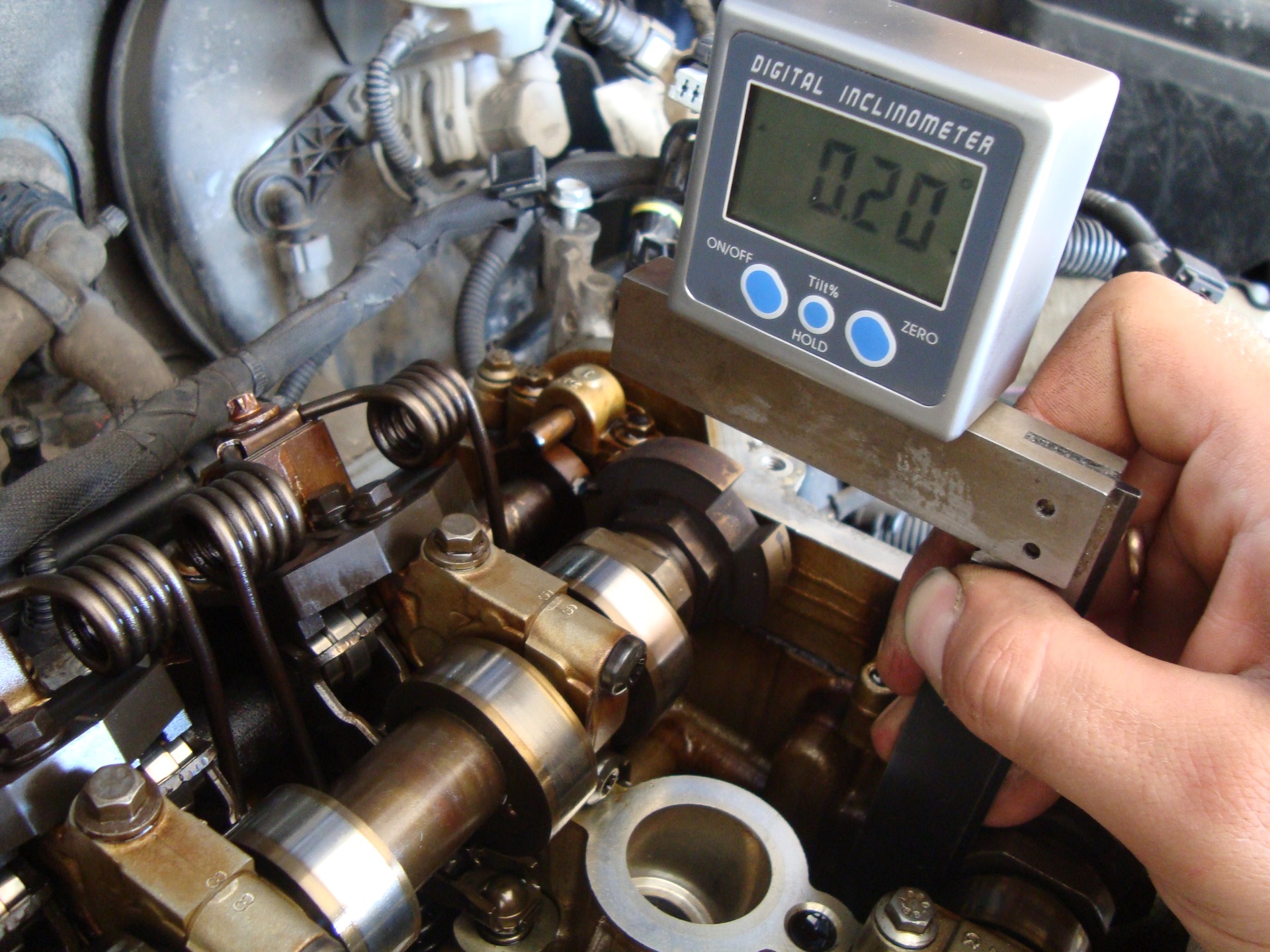 После этого закинул цепь и выставил углы распредвалов по цифровому инклинометру.