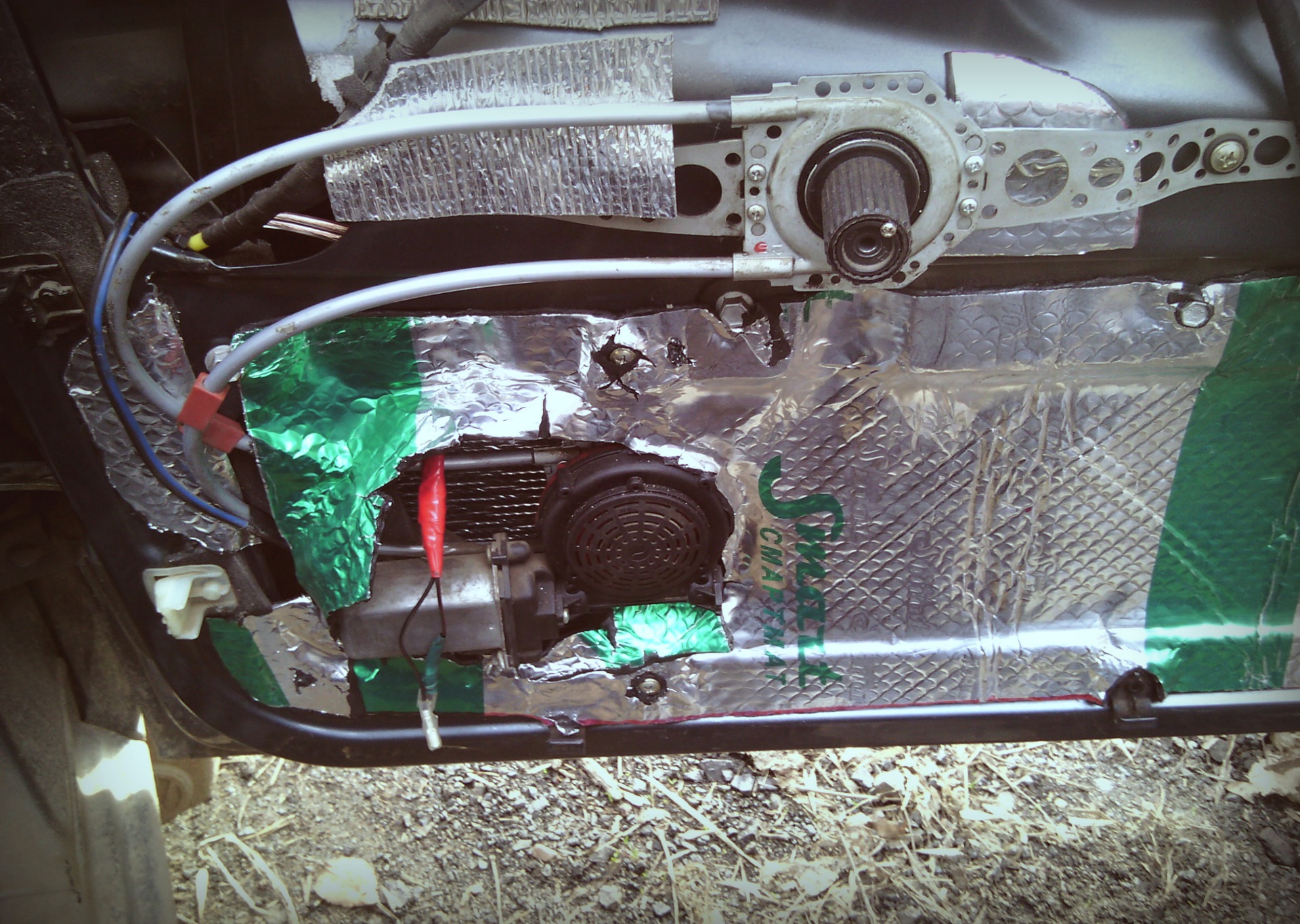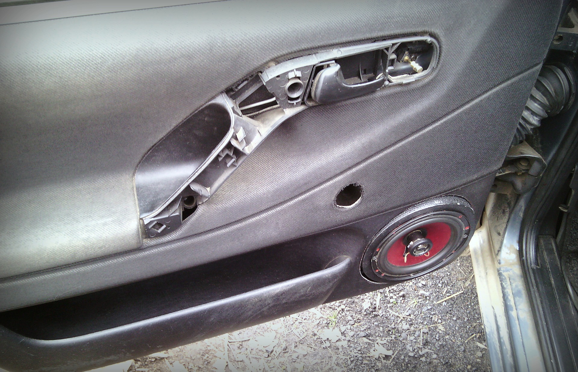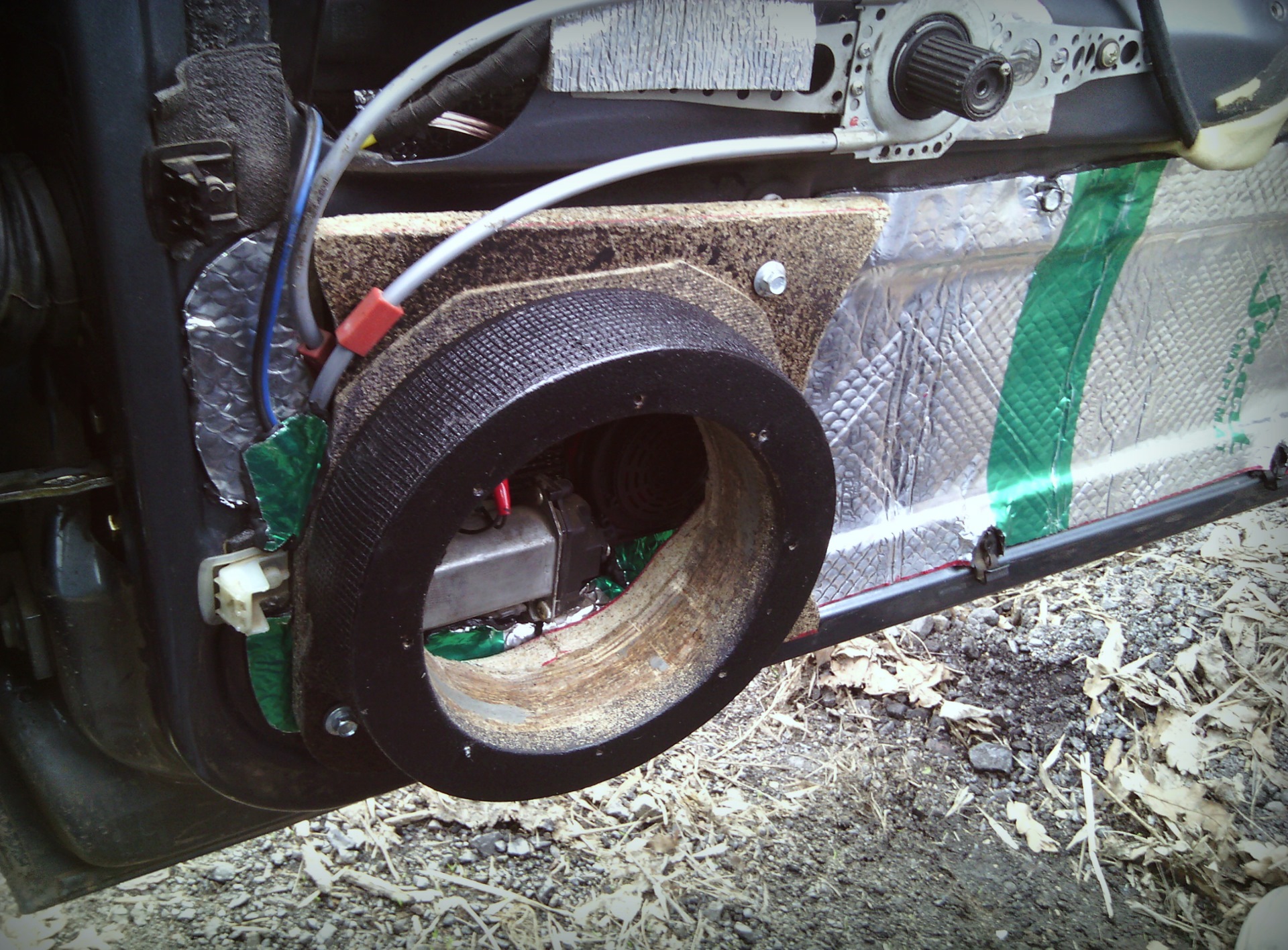 Столкнулся с небольшой проблемкой. Так как у меня стоят не родные эл.стеклоподъемники (точнее остался один, на правой, пассажирской двери) с моторчиками, закрепленными в местах, где должен стоят динамик, пришлось делать подиум широким, дабы влезла магнитная система динамика.