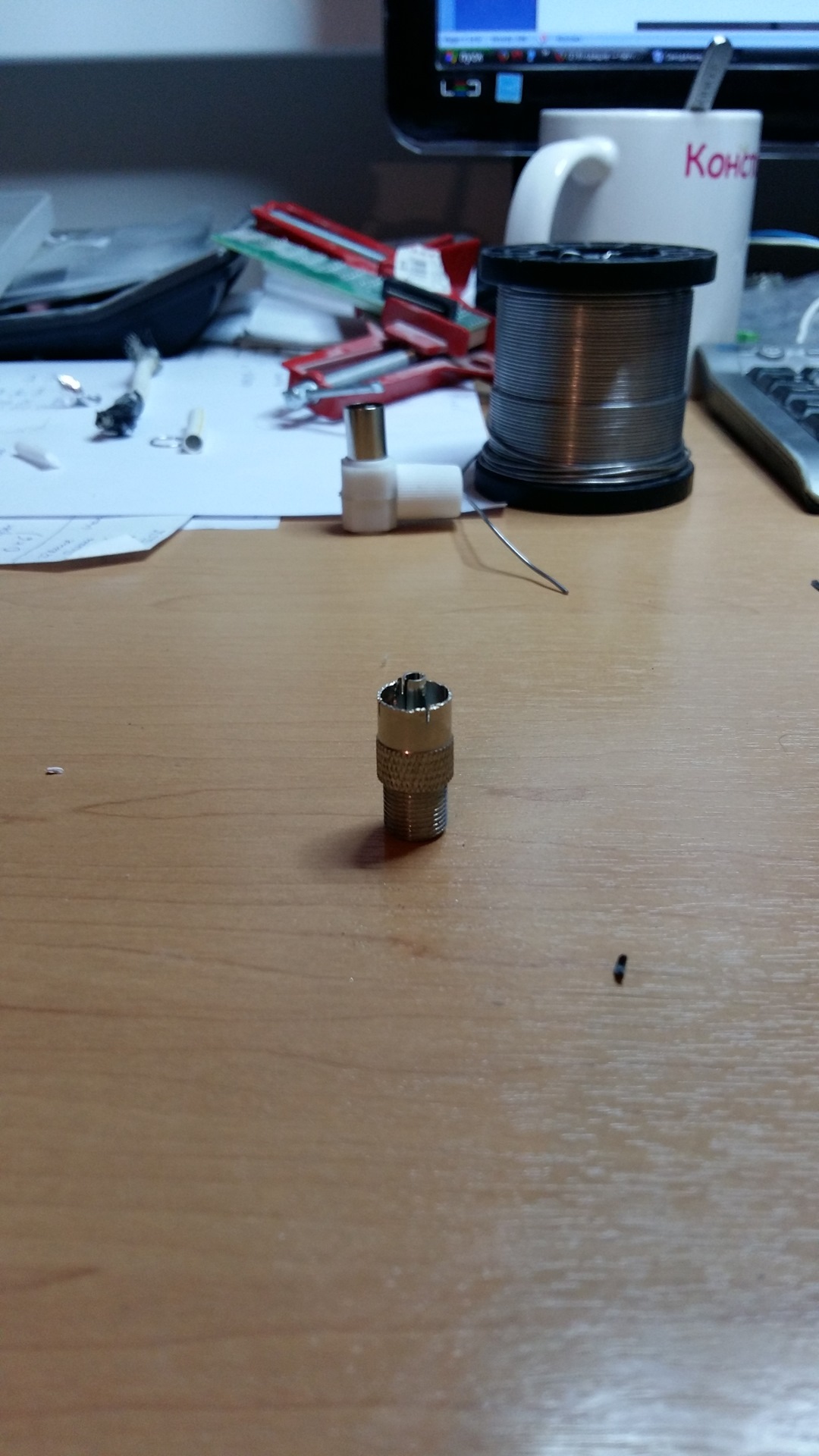 Ответной частью в которую будет вставляться антенный кабель в авто стал обычный разъем мама для ТВ антенн. Его придется доработать. Снимаем наружное пружинное кольцо и спиливаем напильником ребра на конце разъема, т.к. он из мамы превратится в папу в итоге.