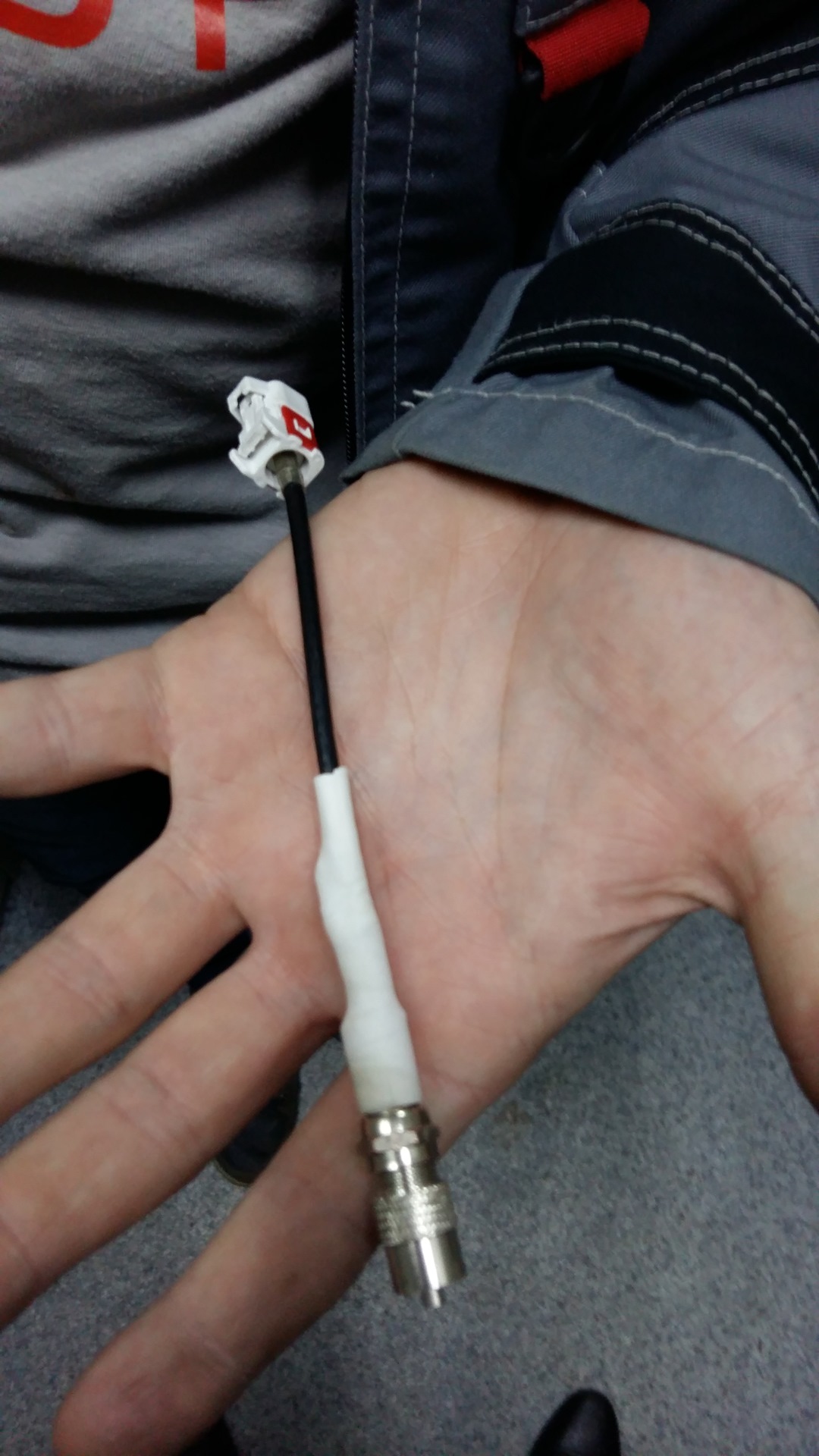 Далее берем провод с разъемом Fakra и через конденсатор делаем переходник