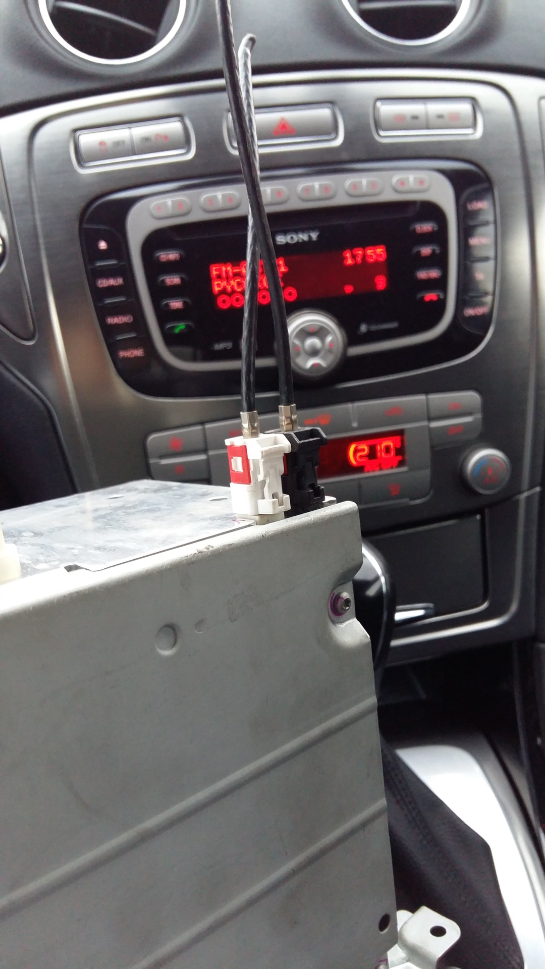 На разборке сразу предупредили, что поставить рестайловый мафон в дорестайл не получится без доделок, т.к. у него 2 выхода на антенну и разъем fakra вместо всем привычного ISO.