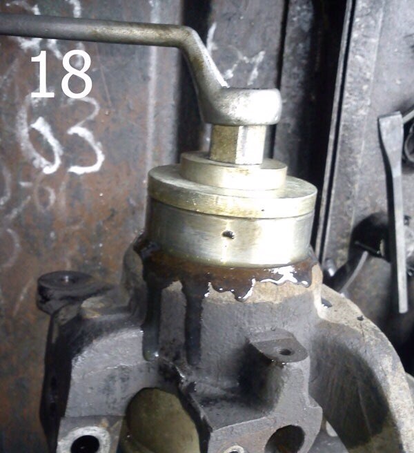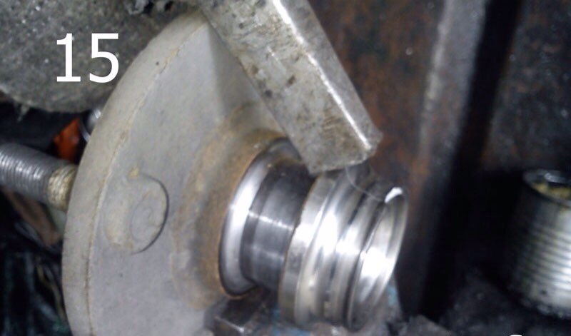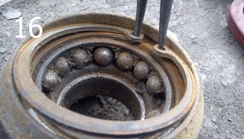 6. Дальше, занимаем демонтажем подшипника. Снимаем стопорное кольцо (фото 16). Выпрессовываем подшипники со ступицы (фото 17). Смазываем маслом подшипник и посадочное место в ступице, и впрессовываем новый подшипник (фото 18). Устанавливаем стопорное кольцо.