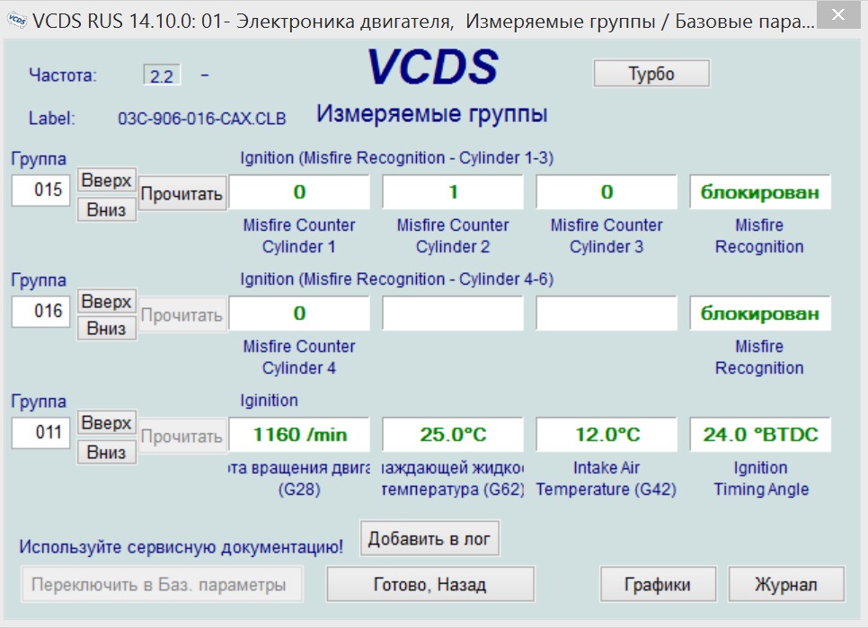 Уже несколько месяцев по утрам на протяжении первых нескольких сотен метров пути беспокоили затыки и дерганья, причиной проявления которых я считал глюки DSG или сцеплений. А вчера ради интереса запустил Васю и проследил за счетчиками Misfire Counter.