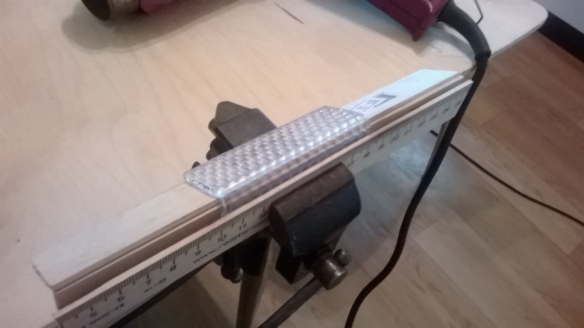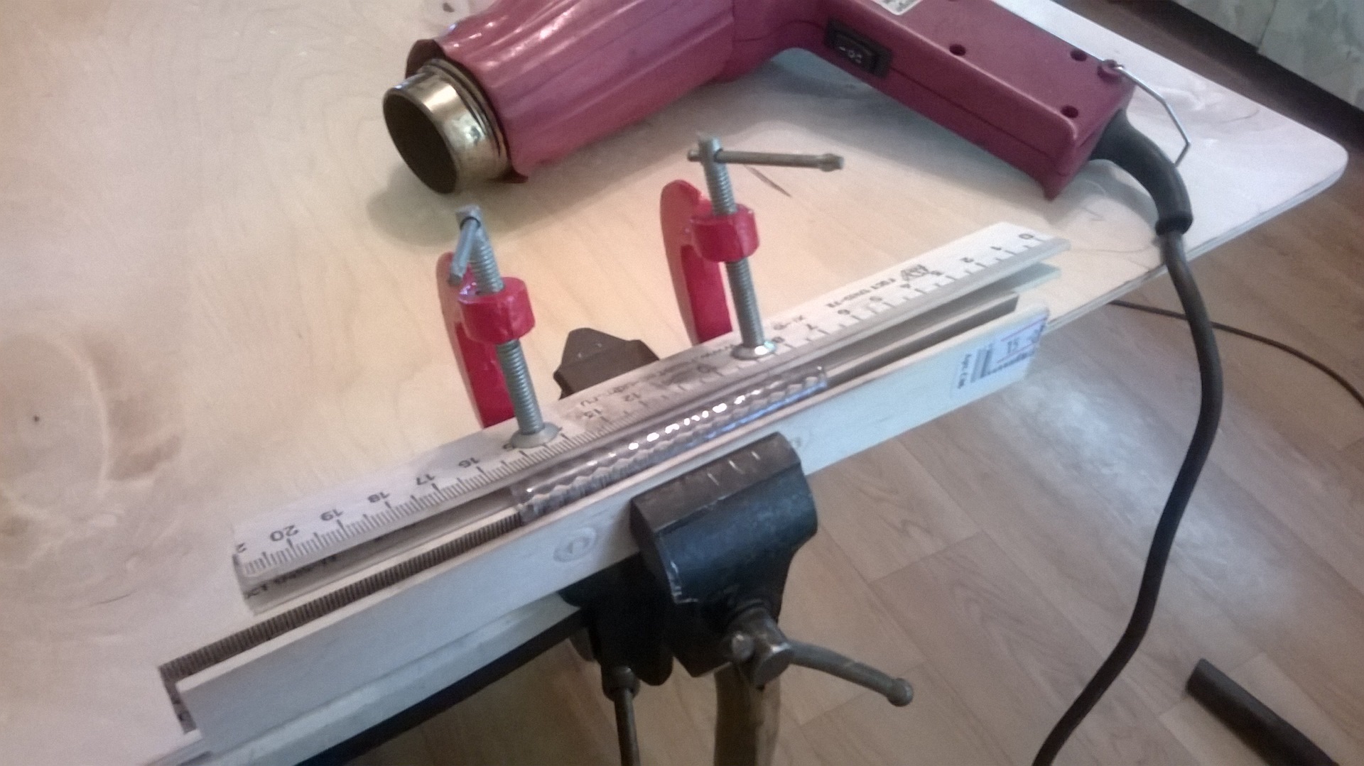 После этого надо было эту часть согнуть под нужным углом. Для этого применил промышленный фен. Процесс сгибания виден на фото.