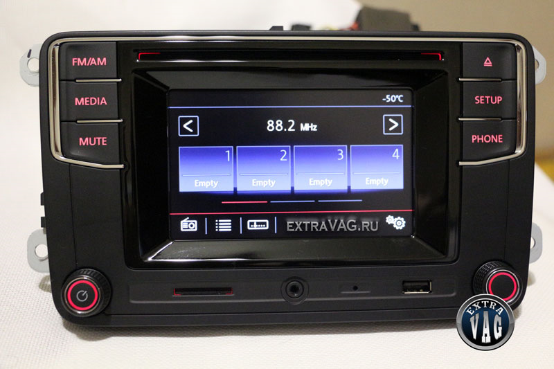 Добрый день. Приобрёл и установил RCD-330Plus. С завода она подготовлена для Шкоды, с соотвествующей заставкой и зелёной подсветкой кнопок.