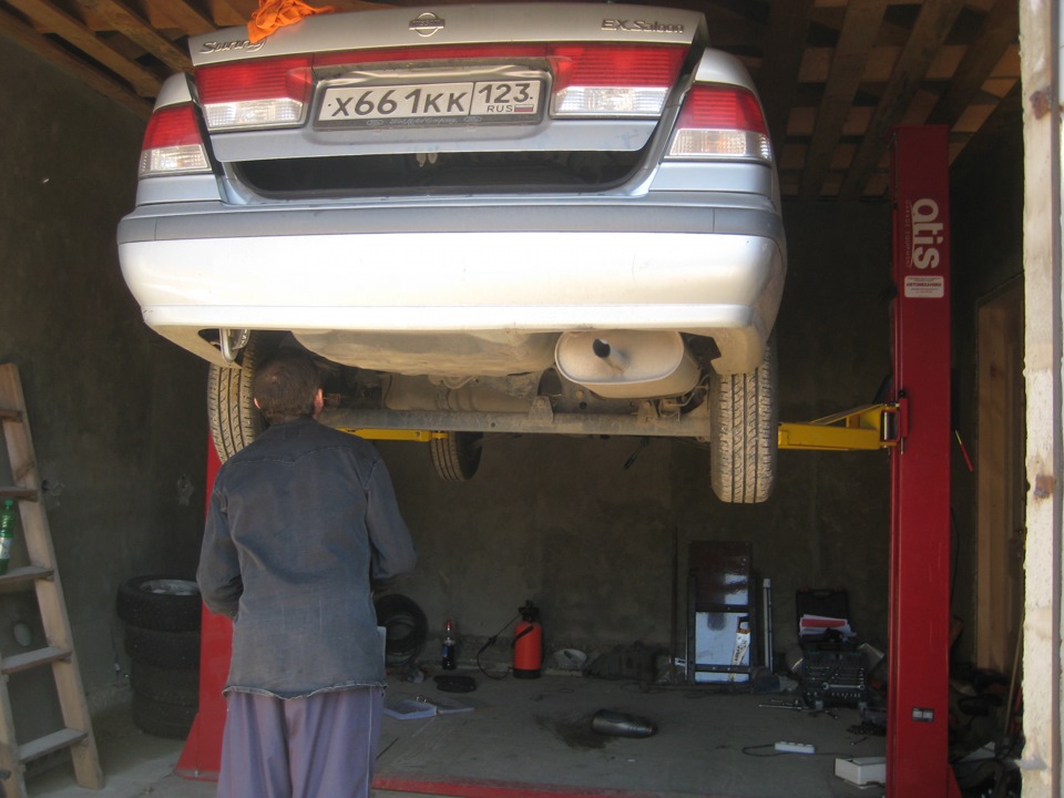 Ставим поциента на подъемник, сливаем масло, откручиваем фильтр