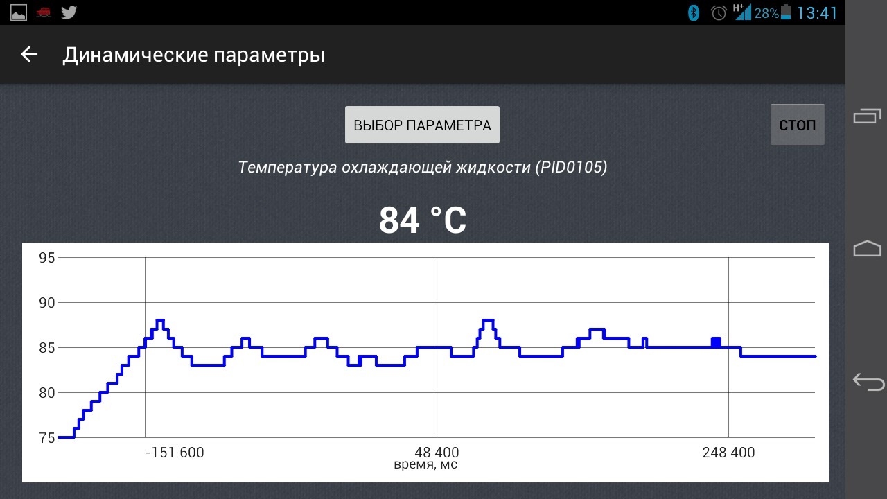 Короче поехал я к дилеру, и они начали с ходу говорить что 86 открытие это норм…я говорю, а температура движка чтобы падала до 73 при езде норм да? Они, ну ладно давайте оставляйте машину. Я понятный пень сказал: ягуара дадите покататься, они: у нас ж рено))) я говорю у вас и рено подменных нету… так что буду ждать. Итог: помыли, открыли капот, машина остыла где то за 1.5 часа. Электрик пошел ковыряться примерно минут на 40. Бегал все к капоту смотрел патрубки и через 3 часа после приезда к ним выдали: приборка показывает 101 градус, эбу 84… тут я поясню маразм: датчик температуры ож он двухконтурный и одни показания на приборку, второе на эбу. Т.е. если бы я не пользовался сканером то летом в жару у меня бы просто не включались вентиляторы, хотя приборка бы говорила что все ОК! и я бы банально мог перегреть двигло. Короче далее оставляйте машину до завтра будем смотреть, я сказал что машина остынет через час, вставите новый датчик и тестируйте, никуда я не поеду. в итоге через два часа меня позвали и сказали что #штекерпомпы (датчика ож) окислился они там пшик пшик и все гуд) показали график температуры там открытие 86 градусов, я говорю чо так рано должно быть 89 градусов, они погрешность норм бла бла бла… короче сказал ладно поезжу потестирую чуть что опять приеду, главное чтобы температура не падала ниже 80 градусов, по итогу: заплатил за мойку 4.5 бакса и поехал домой спустя 5 часов после приезда, температура вроде не падала ниже 83 градусов, позвоню потом на горячую линию узнаю какая погрешность максимальная у термостата может быть. Выложу график температуры при езде после ремонта. Вообще считаю что они что-то темнят, так как до ремонта я сравнил с утра показания температуры ож и датчика впуска: оба по 5 градусов были, так же термостат теперь стал открываться иногда на 94 градусах, иногда на 88, иногда на 86… короче не понятно что они там делали…буду смотреть дальше… всем адекватных ремонтников и поменьше поломок.