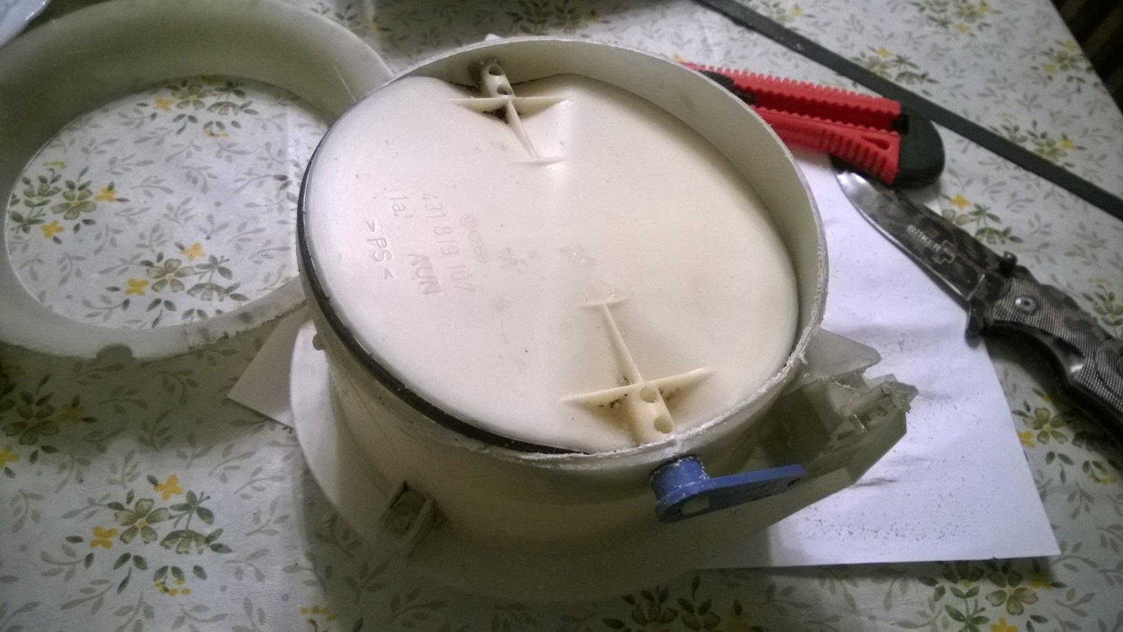 этот раструб на фото- от машины с кондеем, на простых машинах стоит раструб с сеточкой, сеточка легко снимается и корпус легко и без подгонок ставится вместо нее