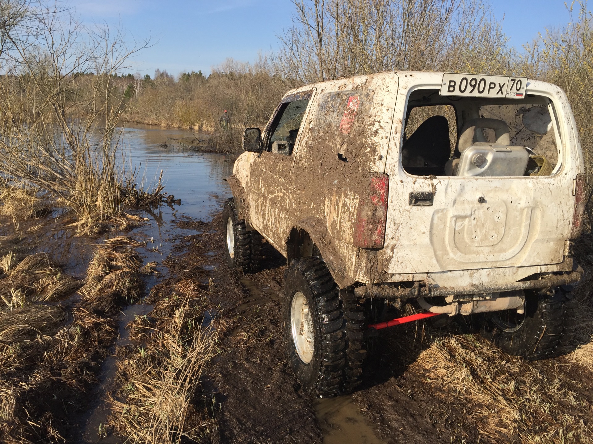 Затестили машину после всех переделок, Боггер едет, спускали до 0.1. Понижения хватает за глаза. Компаунд спас мозги от затопления на отлично. Лебедь мотает в обе стороны. Неожиданно подвёл шноркель или короб воздушного фильтра. Итог захлебнулись. В масле вода, в коробке вода, в гуре вода. Выбрались из воды на лебедке, просушились и доехали своим ходом до финиша. Под конец уже даже двигатель не троил. От наличия воды в системе закипел и выплюнул жижу ГУР. Утопили фотик, рацию.