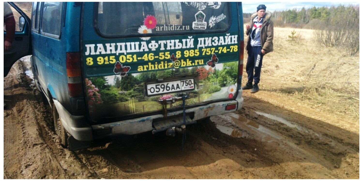 На одном из засадных участков со странно двигающейся почвой ребята помогли засевшему микроавтобусу.