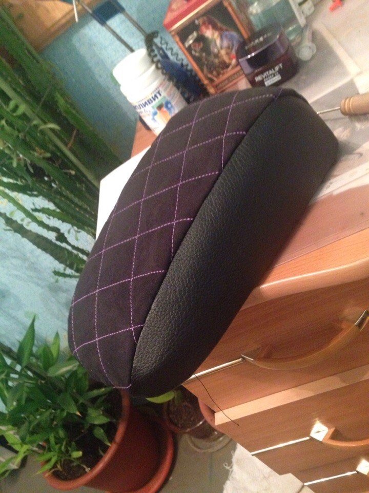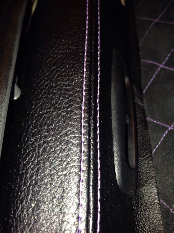 Еще зимой, я начала перетягивать салон кожей+перфорированной кожей, но в моем сознании что то перевернулось и я решила начать все заново, только теперь это кожа+алькантара. Ну и само собой везде фиолетовая строчка)На данном этапе готовы: