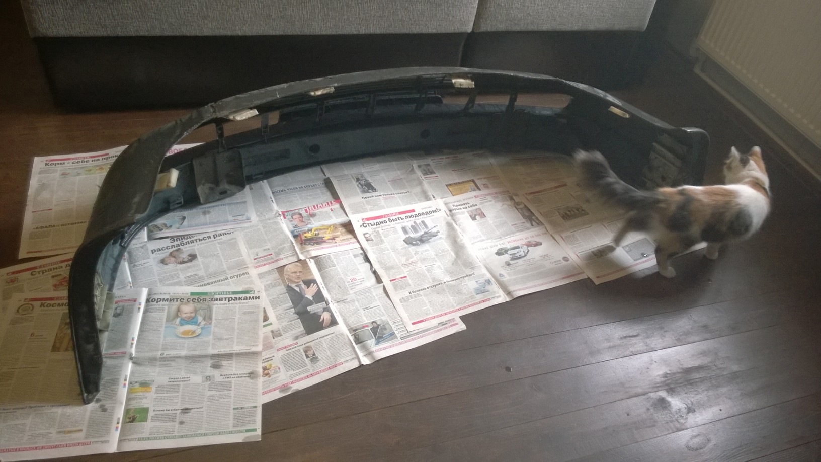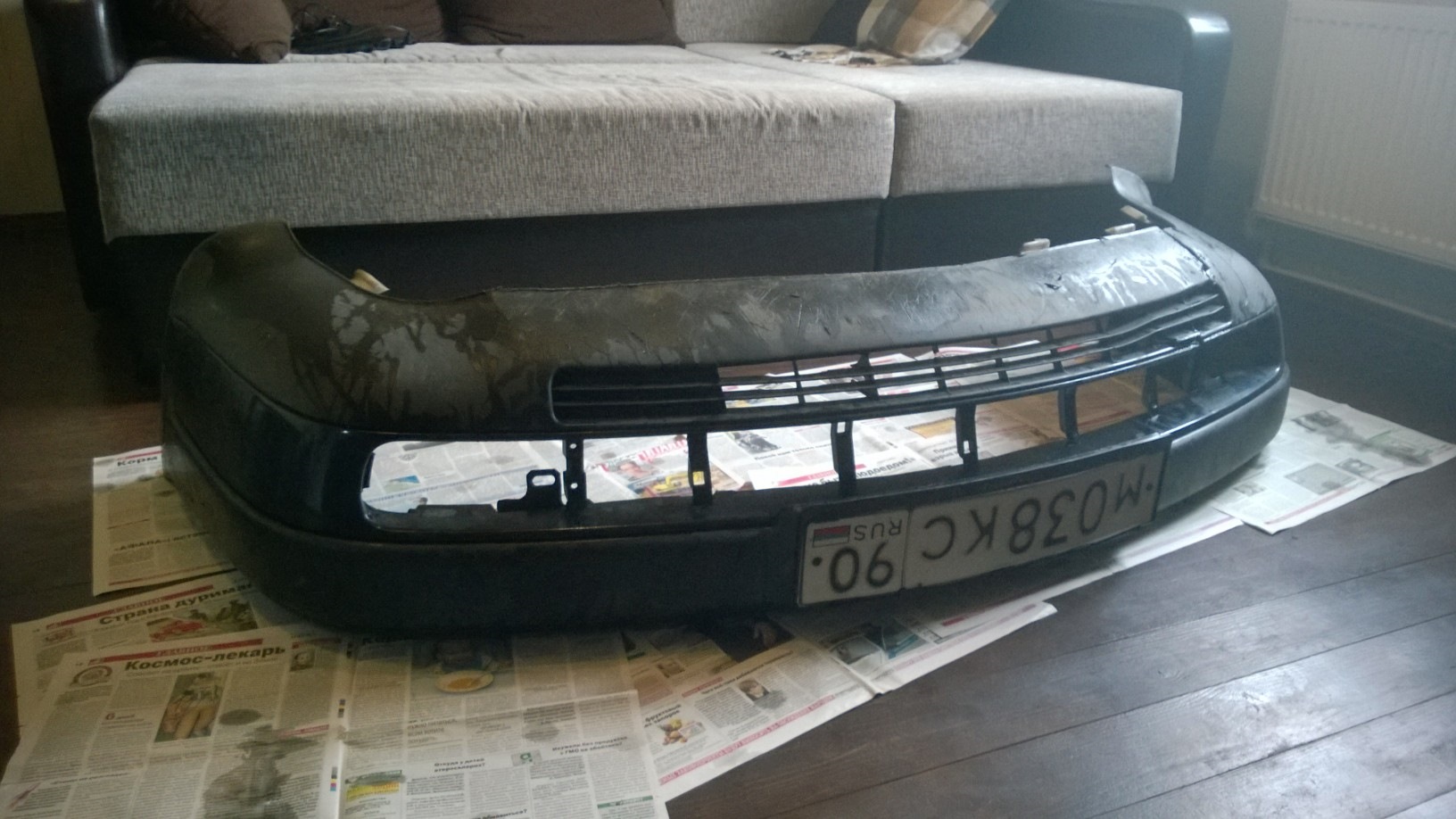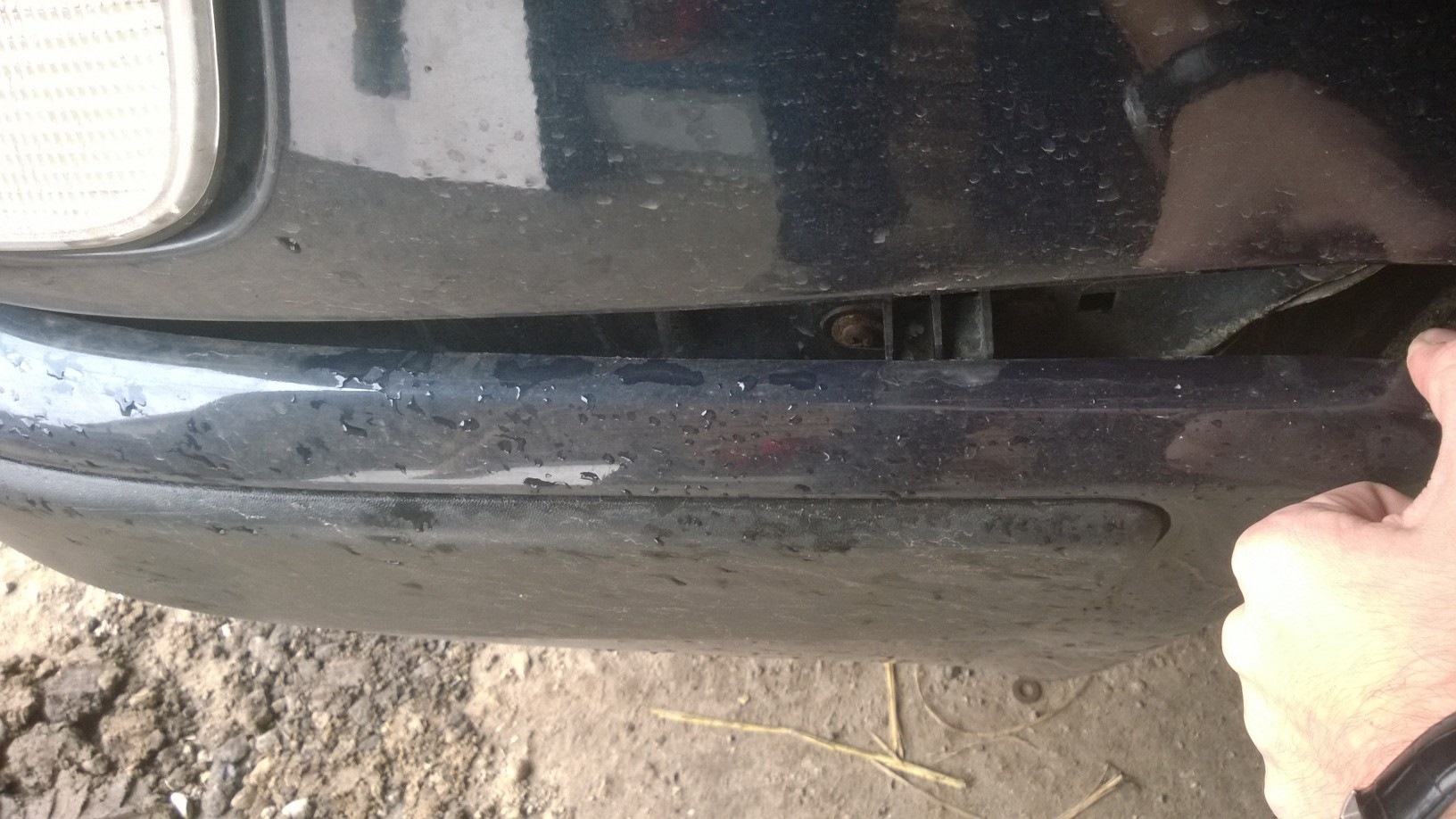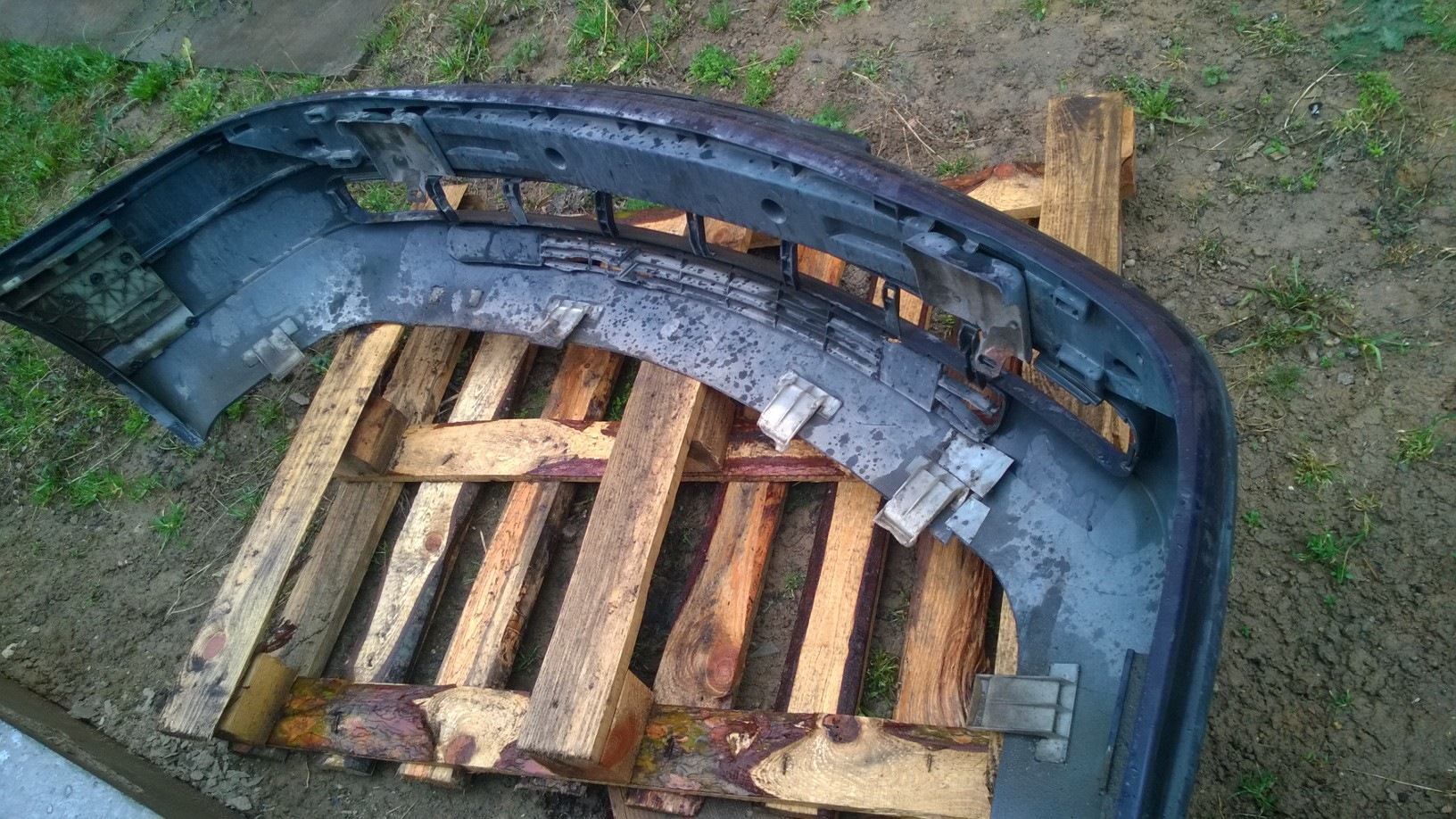 Как я уже писал пару недель назад, при неудачном заезде в гараж порвалась губа бампера. Думал взять новый неоригинал, но в комментариях товарищи меня отговорили. Его долго придется подгонять по размерам, а новый оригинал вместе с покраской будет стоить космическую сумму денег. Б/у бампер тоже придется перекрашивать, да еще и заделывать косяки.