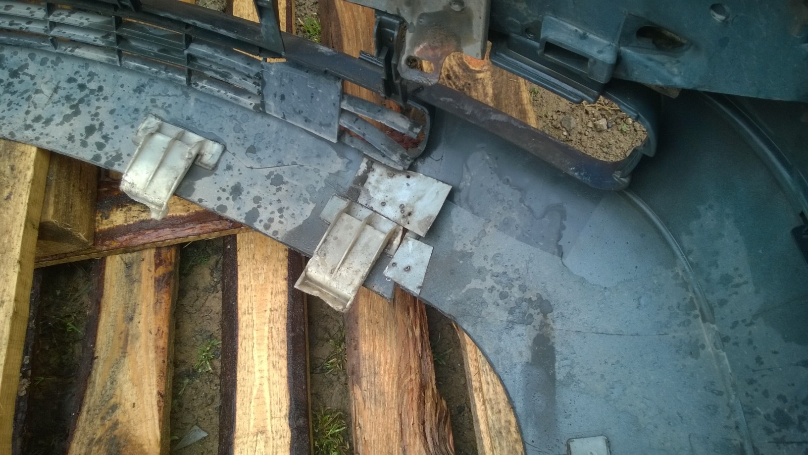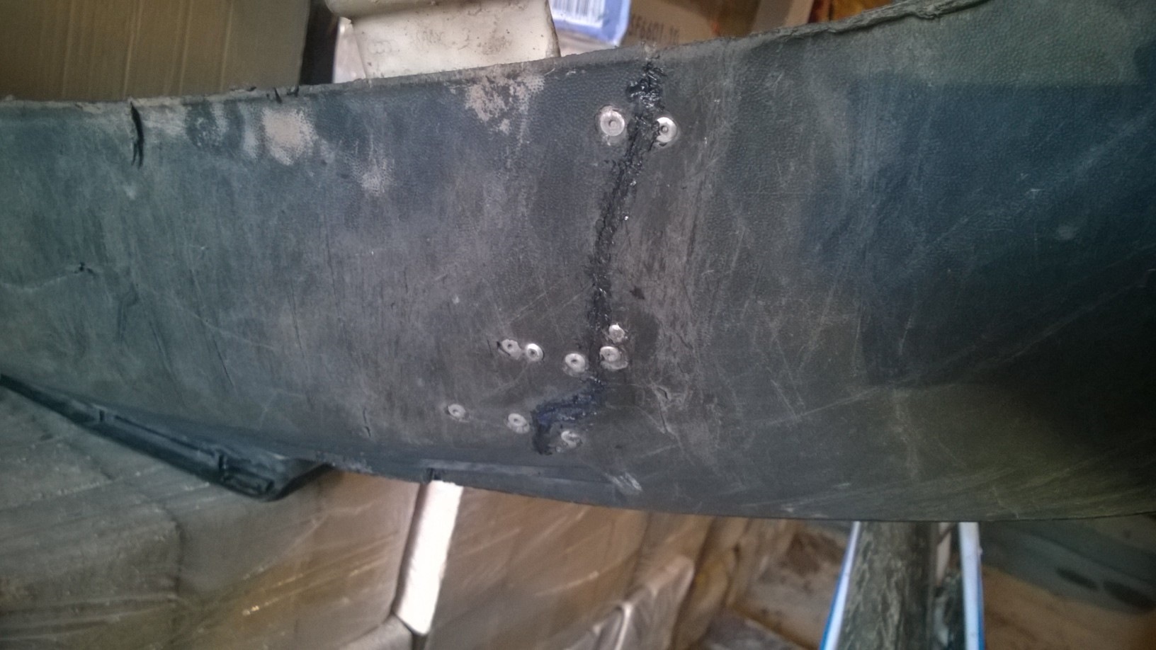 Бампер отмыл, притащил домой — и давай паять. Пропаял почти все трещины и стыки, которые оторвались. До меня его уже ремонтировали — это видно на фото. Заклепки и металлические пластины на месте разлома — не моих рук дело, я пошёл другим путём.