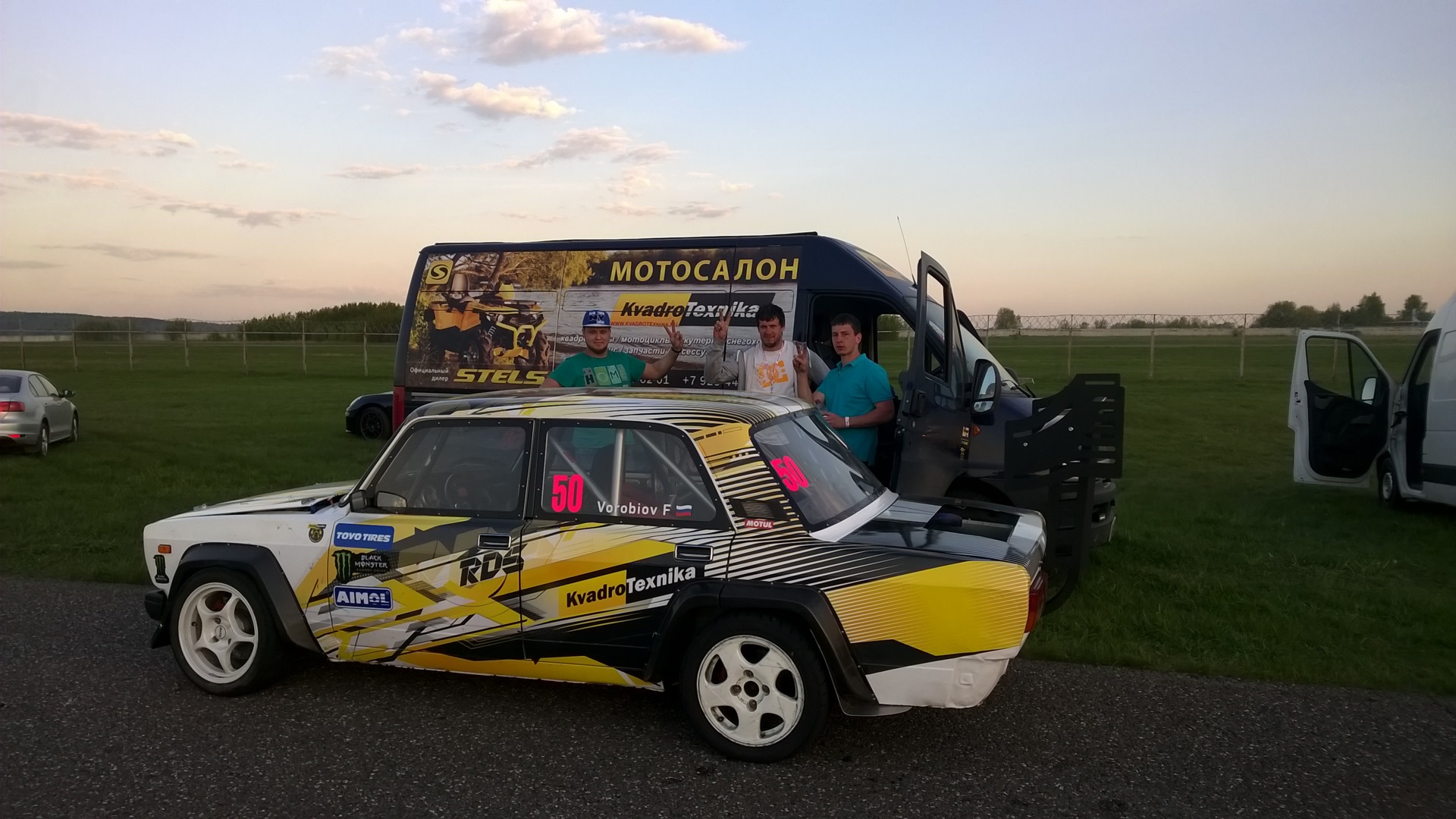 И так друзья, 1-ый этап закончен. Самое главное мы получили колоссальный опыт после столь длительного перерыва, в целом на тестах и квалификации машина вела себя хорошо, за исключением мотора в котором нам так и не удалось поднять давление турбин с 0.6 штатных до 1.1 планируемых. К концу тренировок в день соревнований у нас нарушилась работа передних амортизаторов и к началу парных заездов машиной стало очень сложно управлять в сочетании с недостаточной мощностью. Но мы преодолев все трудности вышли на парные заезды и бились по максимуму. В целом 1-ый этап очень понравился, много зрителей, много пилотов, отличная погода, первые ценные очки, ну и сам дрифт конечно! Хочу от всей души поблагодарить мою команду! Зрителей! И нашего спонсора мотосалон KVADROTEXNIKA. Сейчас мы проводим работу над ошибками и конечно вновь и вновь будем вас радовать красивым дрифтом! Дальше будет интересней.