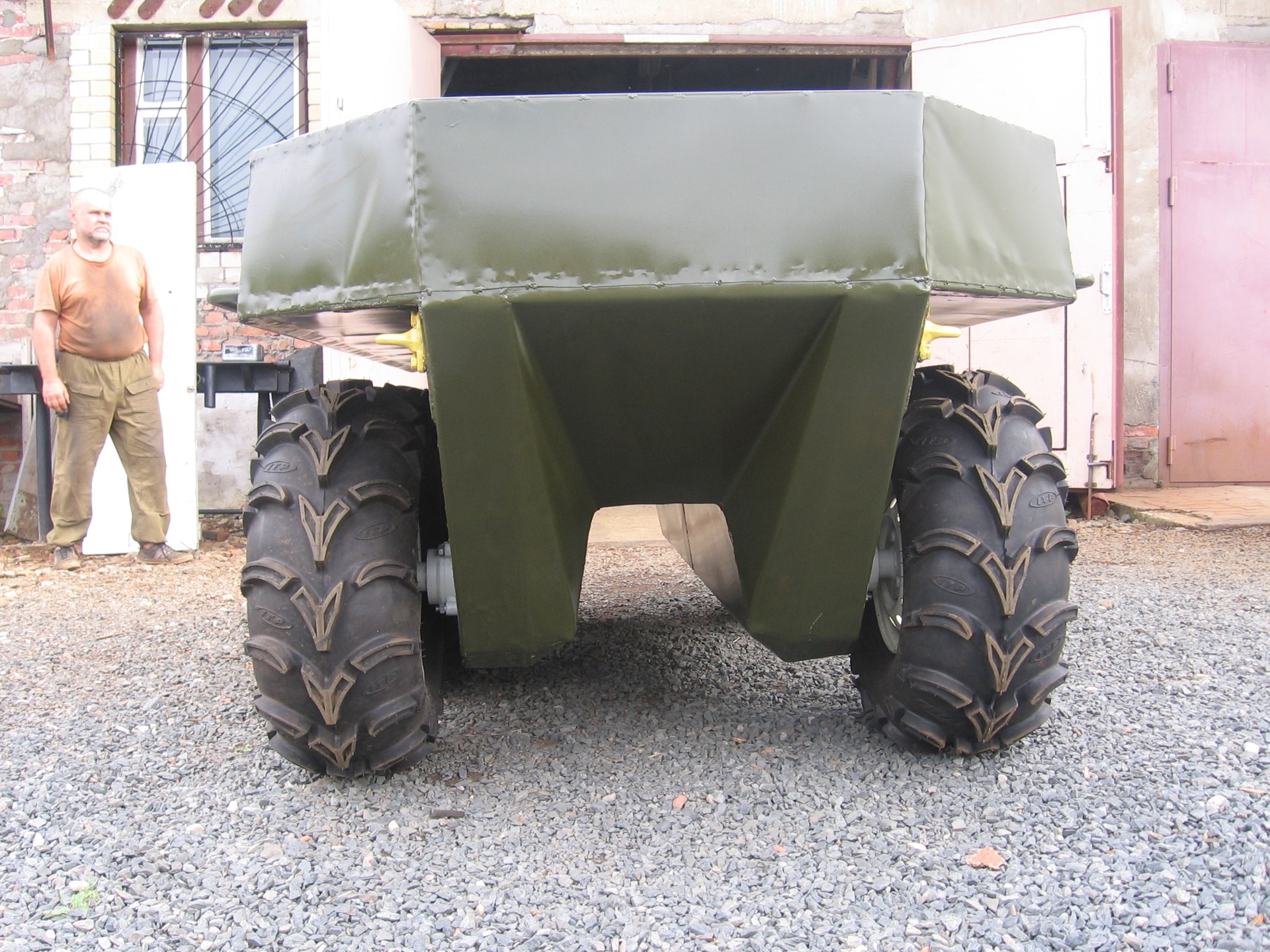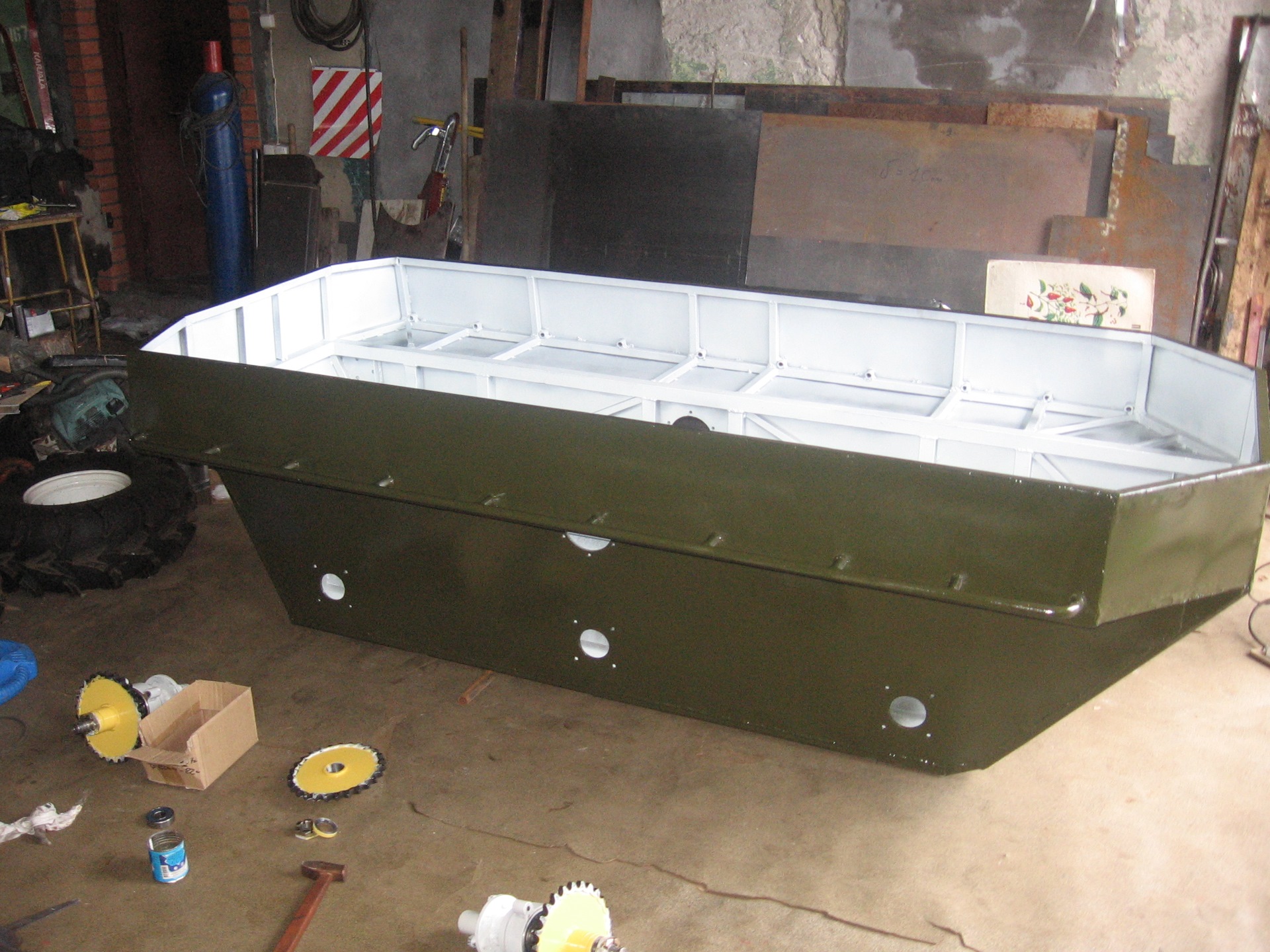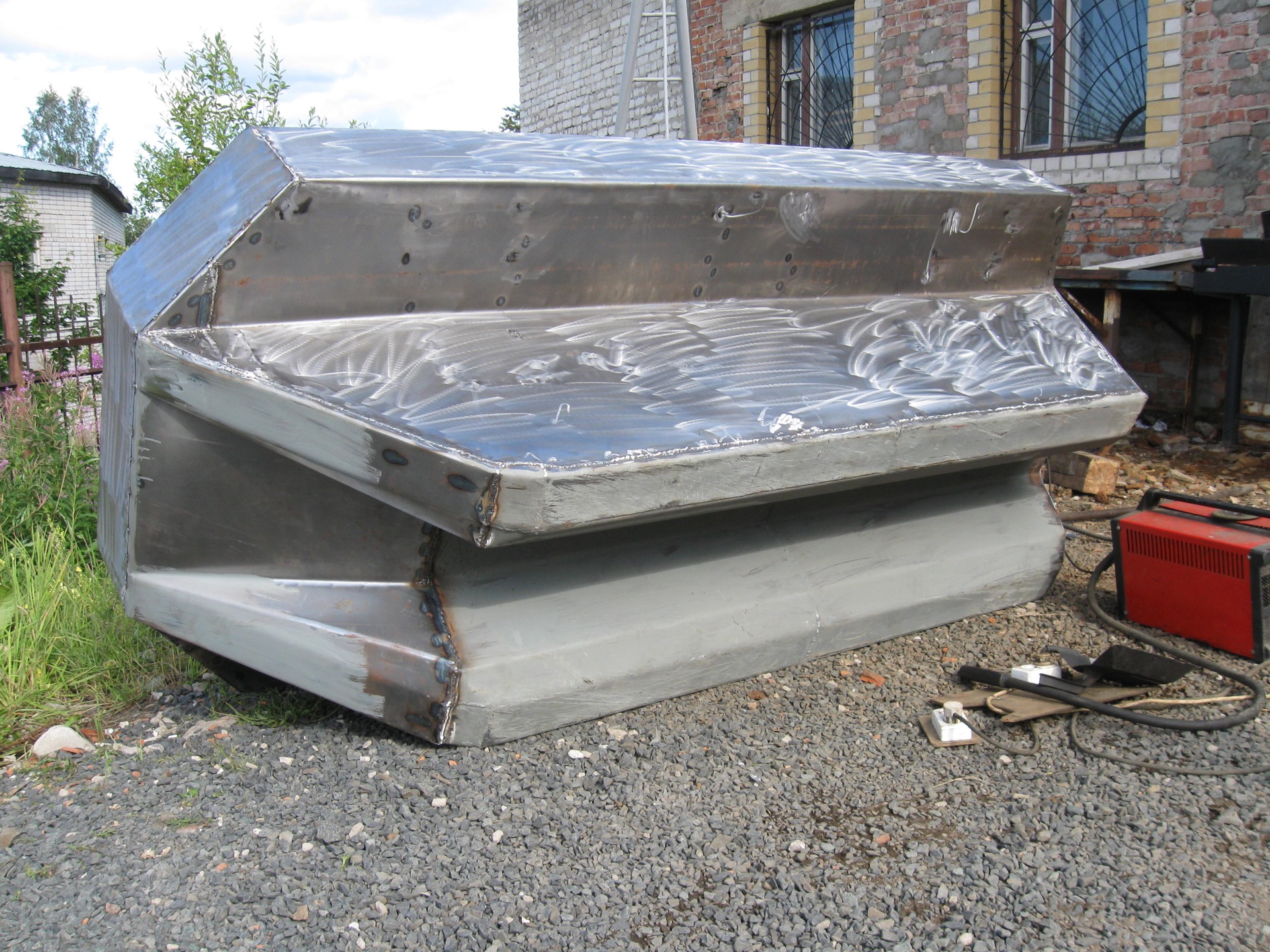 Нижний лист на дне из 2-ки. Верх будет 1 мм. Геометрическое водоизмещение с колесами до бортика 820 л.