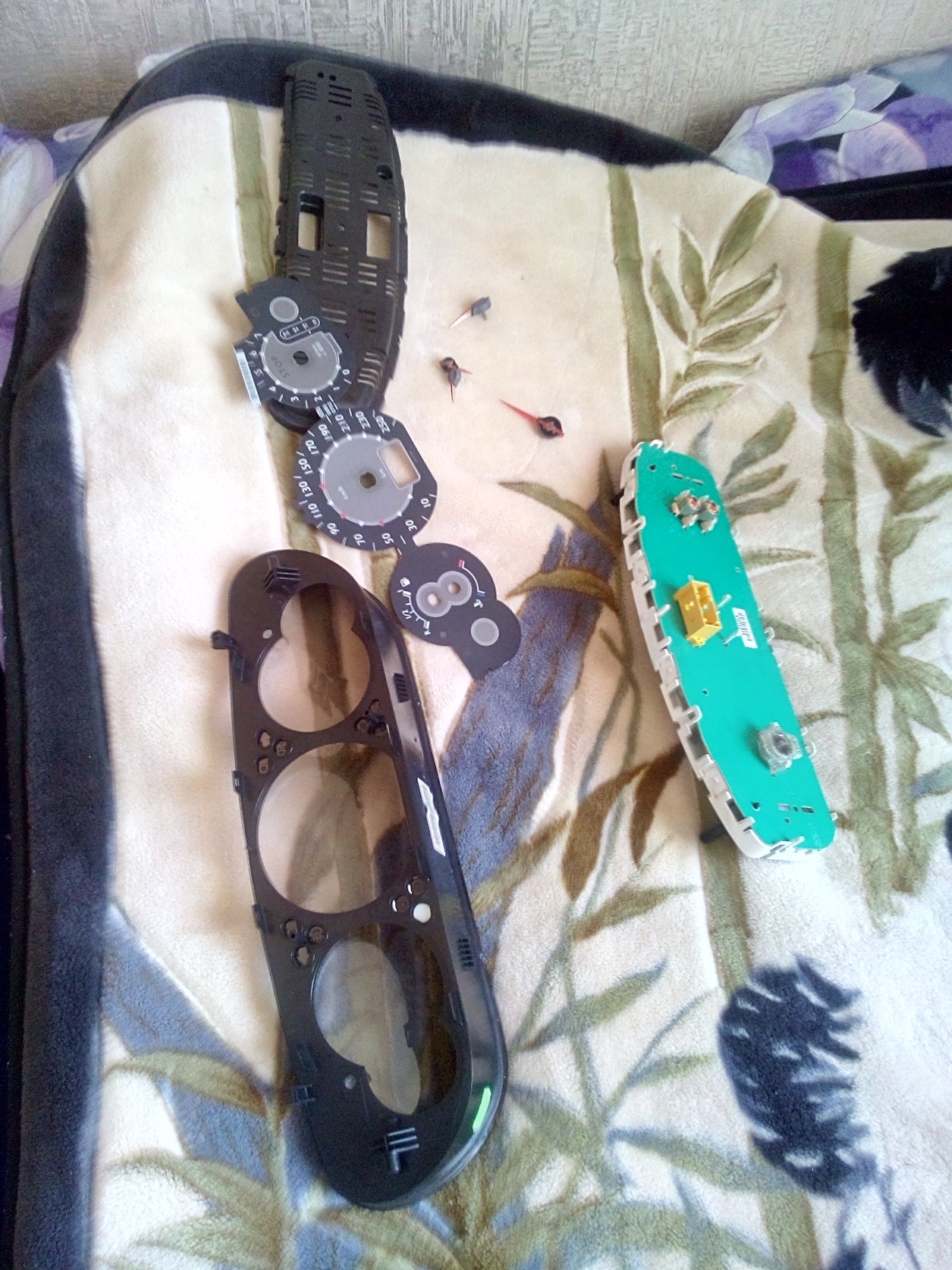 А на хера ты все маленькие стрелки снимал и циферблаты? Достаточно было снять стрелку спидометра и сзади вытащить моторчик…