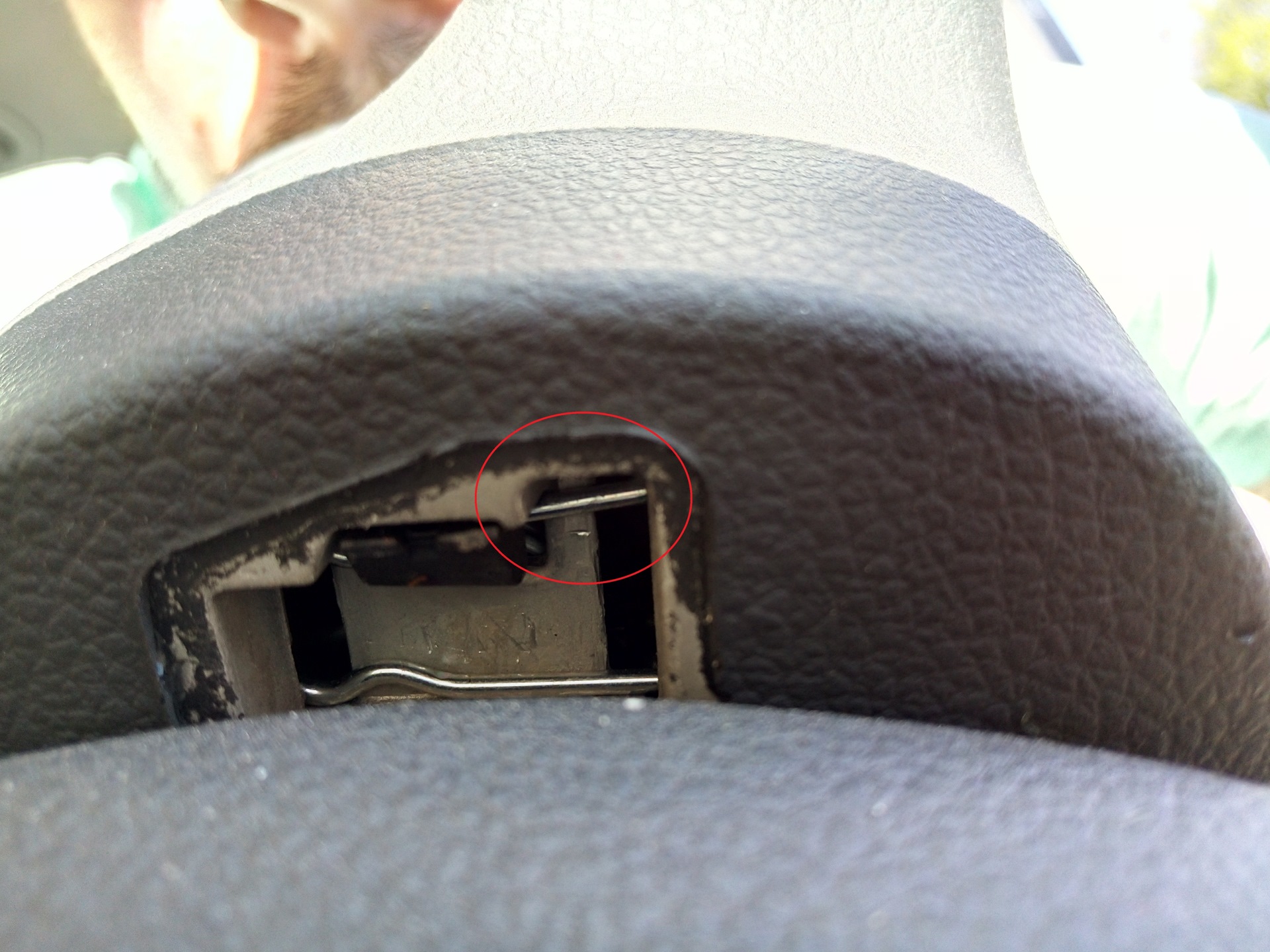 Приступаем к установке. Снимаем минусовую клемму с аккумулятора. Далее нам необходимо снять руль, для этого отгибаем с задней стороны стопор и тянем подушку на себя.