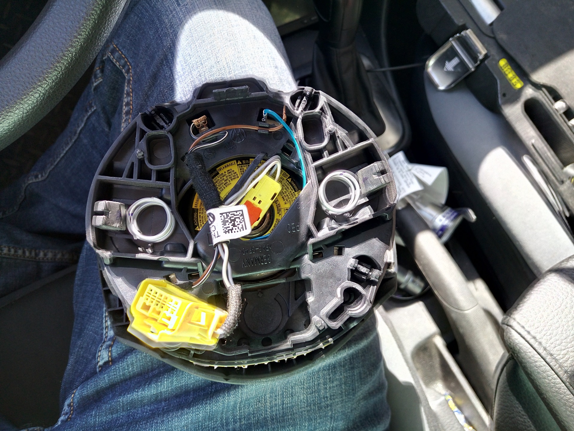 После освобождения подушки отключаем фишку подушки, и приступаем к откручиванию руля.