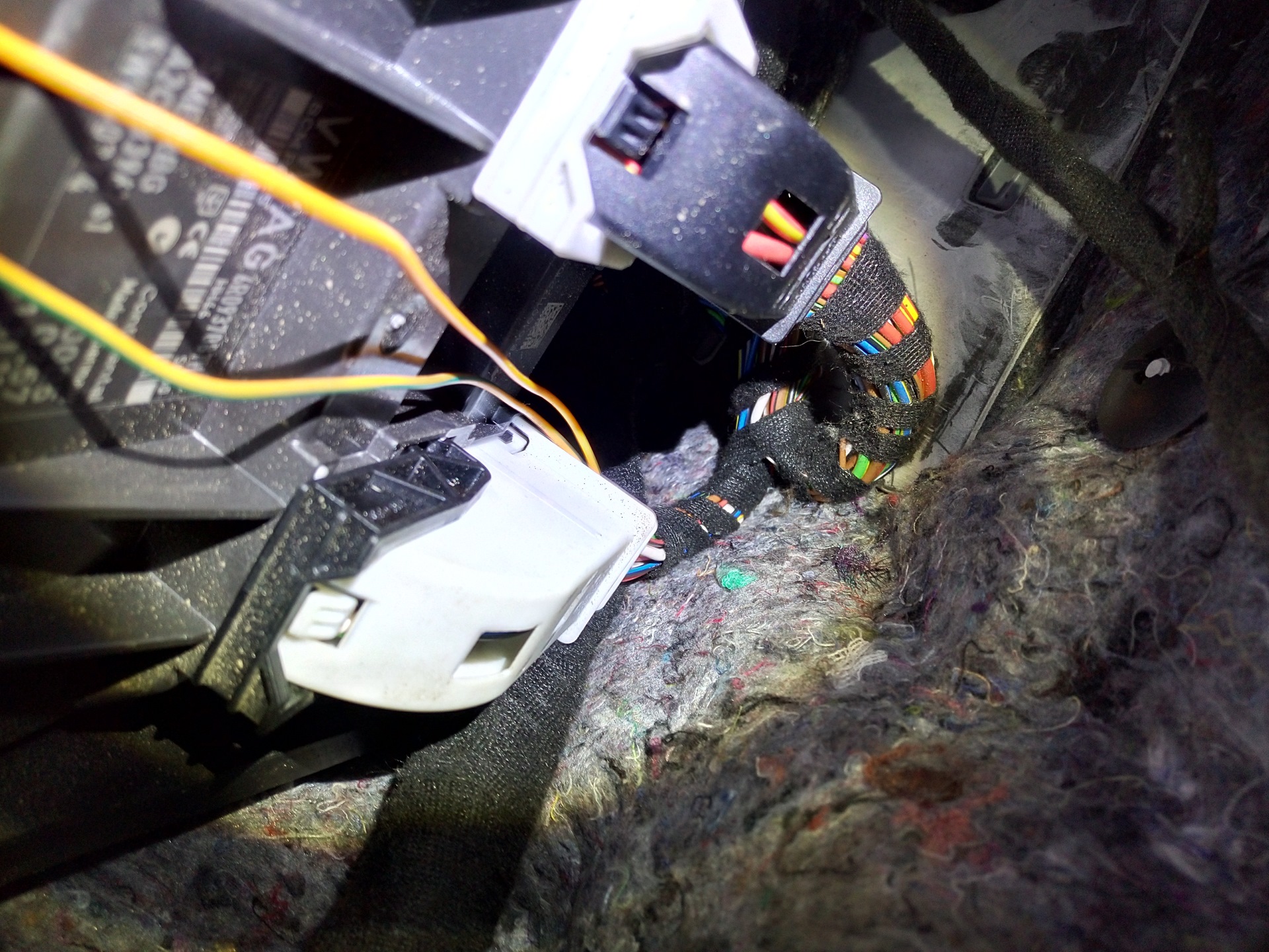 В последствии оказалось что он не требуется. После того как вставили все провода по номерам, меняем стрекозу и собираем все в обратном порядке. Основную работу мы сделали, теперь необходимо подключить провода к блоку ВСМ, к блоку ЭБУ и к блоку предохранителей. Для удобства я снимал водительское сидение, что бы было удобно подключать провода к блоку всм, не очень удобно работать в позе змеи) Блок ВСМ находится под ногами, нас интересует белый разьем.