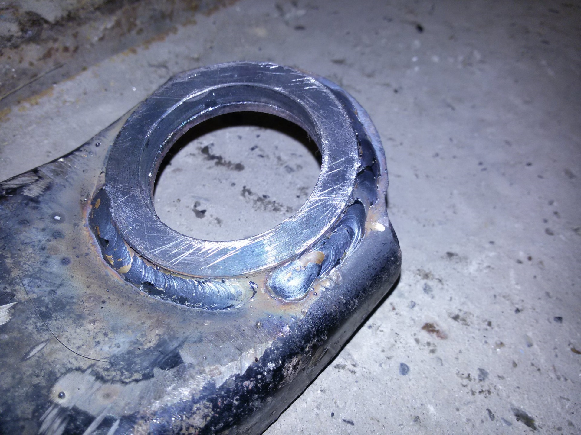 Судя по фото автора вроде внутренний диаметр привариваемого кольца для крепления шаровой повторяет диаметр отверстия в рычаге под крепление шаровой (т.е. примерно 39,7мм).