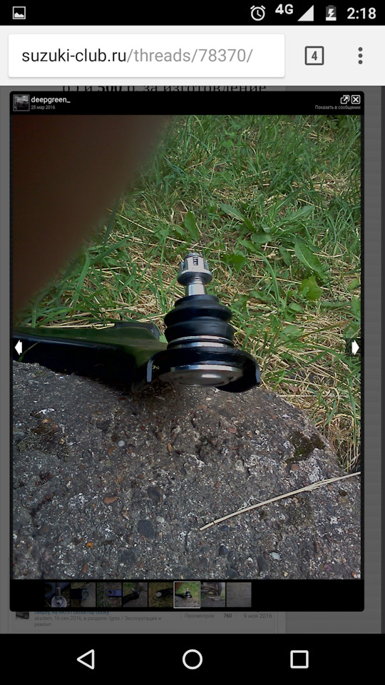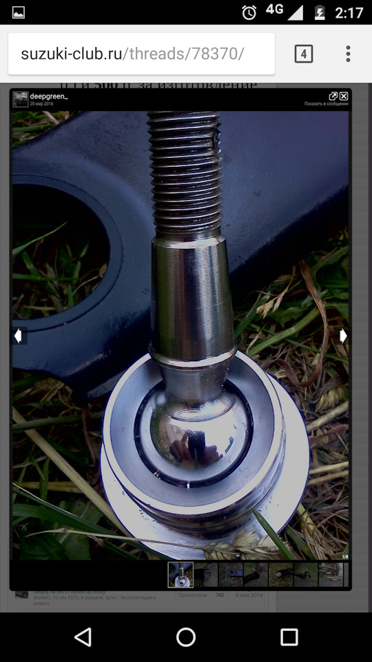 Отлично! Вот только почему то на сузуке клубе кольцо было ступенчатое и приваривалось с нижней стороны рычага, а у Вас не ступенчатое и приварено с верхней. Есть в этом разница? От чего шаровая? По номеру пока не могу посмотреть.