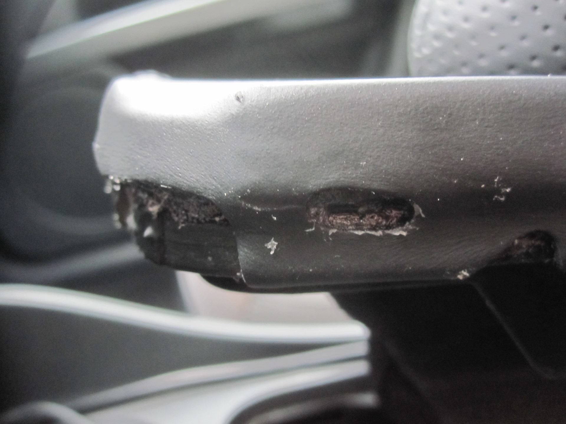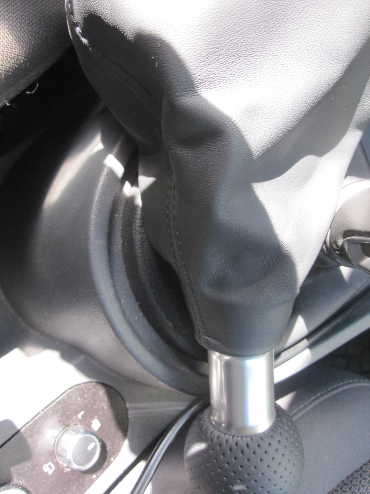 Да и пухлая перфорированная ручка отлично сочетается с перфорированным рулем (был бы он еще новый, а не потертый.) и подлокотником