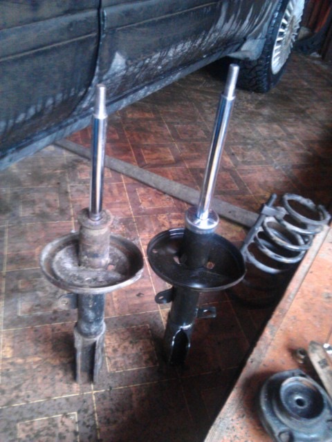 Давно лежали задние аморты, купленные еще зимой. Ждал тепла, но его не дождешься)))).