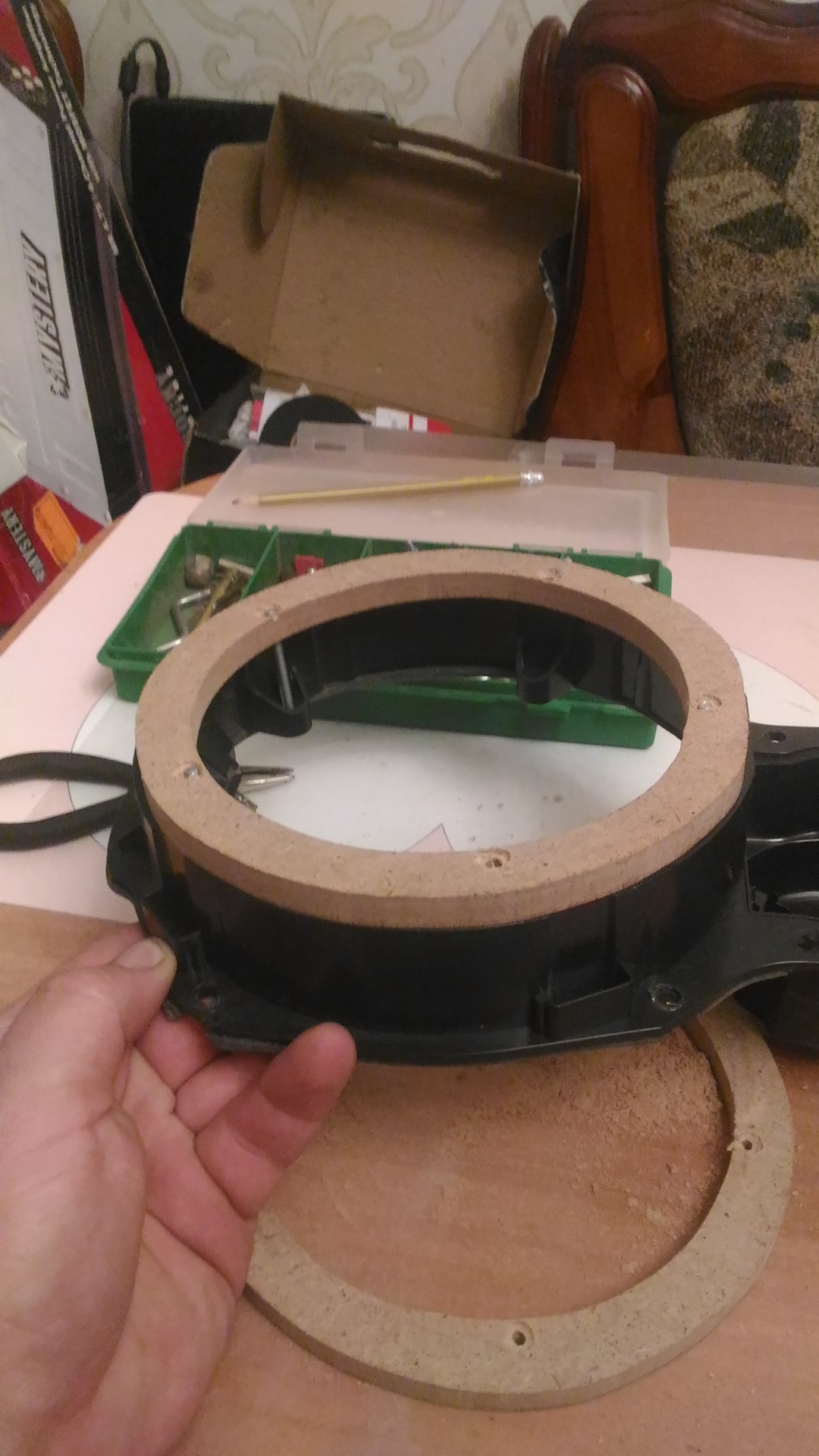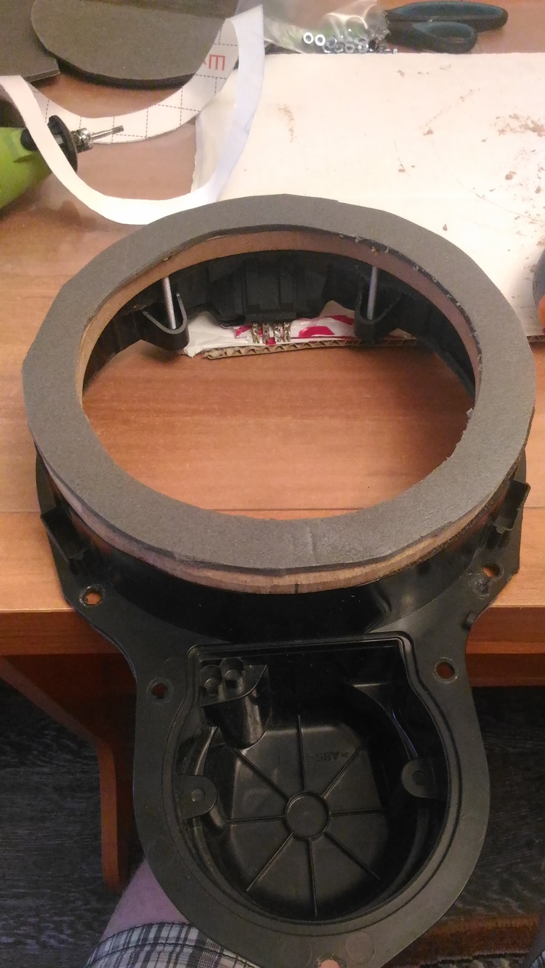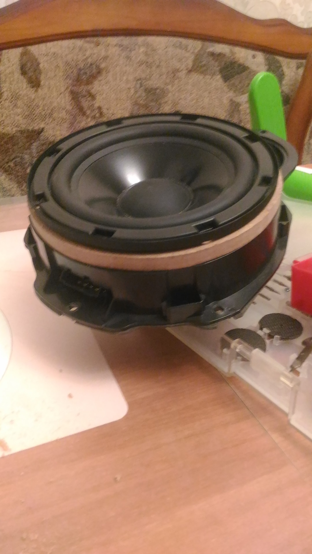 Для этого купил проставки из толстого ДВП толщиной 10мм, как высота штатного НЧ динамика от которого избавились.