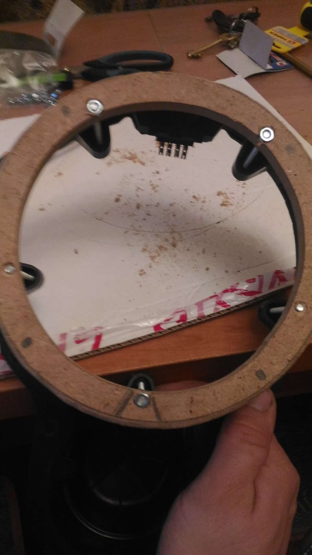 Подвесы сильно перекрутило, надо было НЧ динамики не саморезами притягивать, а сначала кольцо на вю плоскость накинуть, прижим был бы более ровный.
