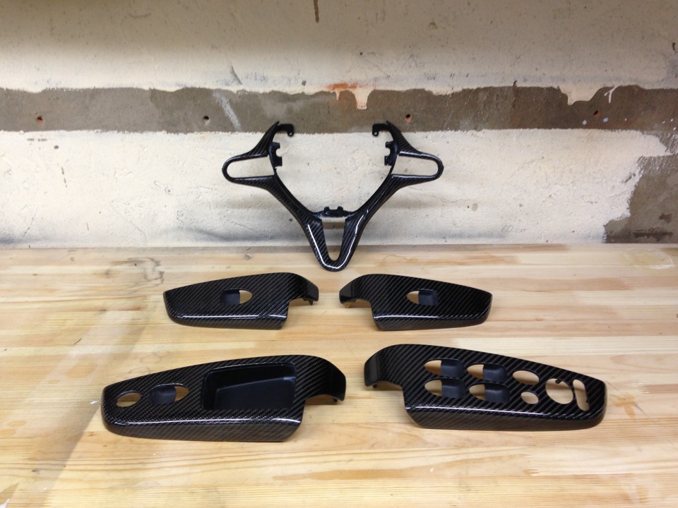 Я так понял тебе нужны эти оригинальные пластиковые накладки под кнопки, руль? Ты сделаешь карбоновую копию с них с креплением или будет карбоновая накладка поверх оригинальной?