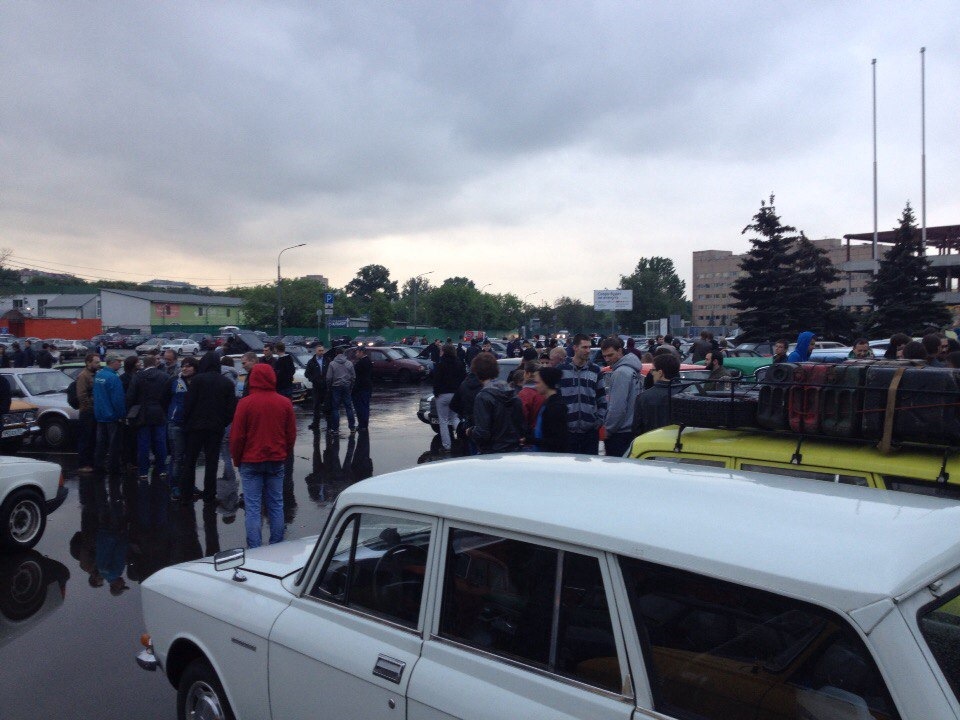 В прошлом году было не очень, сказывалась организация на уровне "мы приезжаем на одно и то же место 9 лет подряд", то есть — не было никакой организации, в итоге просто куча Москвичей вразнобой стояла вдоль дороги в три ряда беспорядочно, а владельцы этих москвичей рисковали оказаться под колесами мимо проезжающих менеджеров, работающих на Рено.