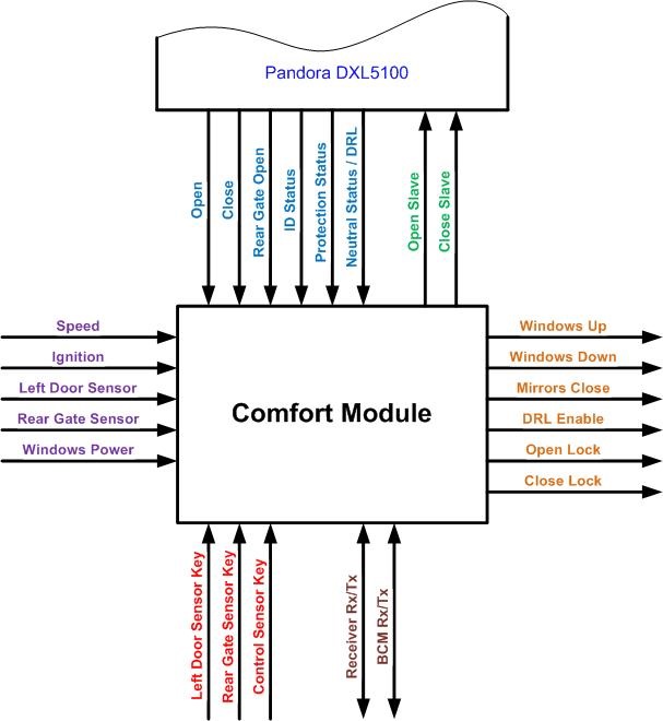7. Управление складыванием зеркал при постановке на охрану также перенес в блок комфорта. Таким образом освободил выходной канал Пандоры.