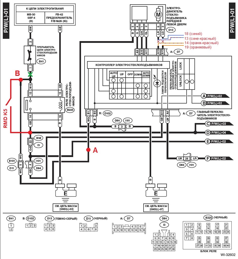 Алгоритм работы такой — если в режиме "снято с охраны" не было открывания/закрывания окошек, тогда при постановке на охрану импульс закрытия на доводчики не подаётся. Ну а т.к. силовая цепь стеклоподъемников подключается к блоку комфорта то логично было установить туда и силовое реле, убрав канал RMD K5 Пандоры.