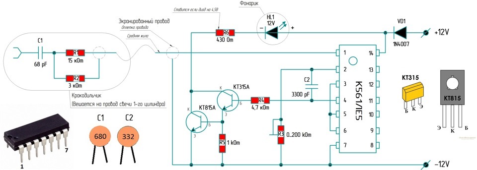 Микруху заменил, но он теперь начинает мигать когд подносишь прищепку на сантиметров 20 к трамблеру. Что заменить, что бы он брал импульс от провода. Может нужно провод экранированный по больше в диаметре.У меня совсем тоненький.
