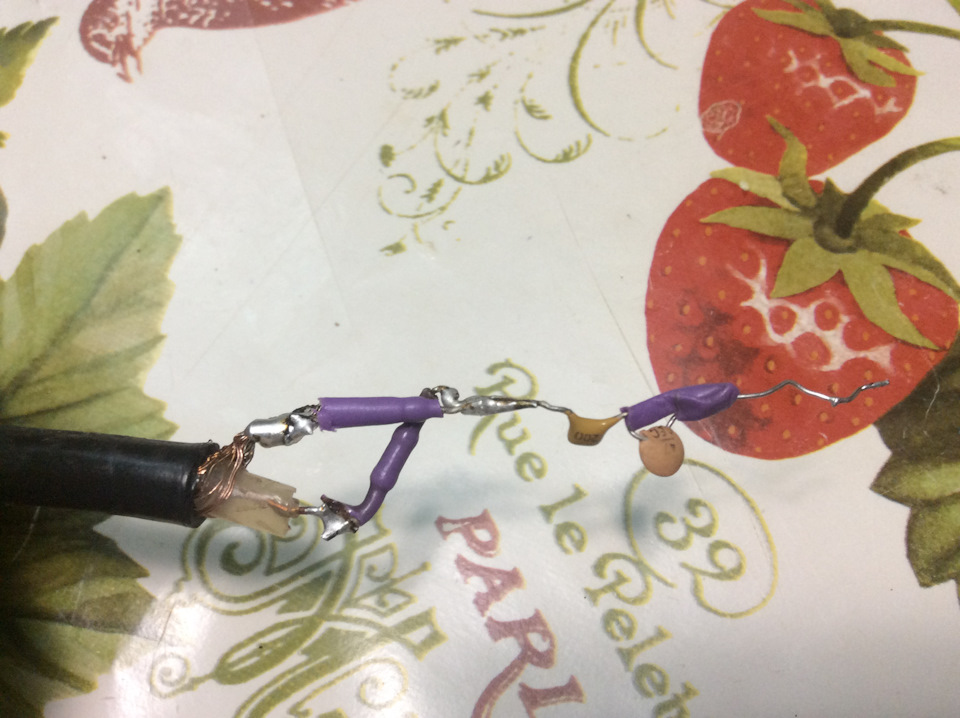 Одно уточнение, вместо коаксиала использовал экранированый двухжильный провод для микрофона, в котором обьединил жилы. Может из за этого номиналы сопротивлений другие надо?