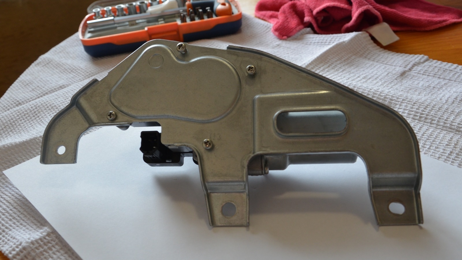 Как снимать обшивку двери не фоткал. Там все просто. Вынимаем клипсу около ручки двери, потом аккуратно отщелкиваем пистоны. Снимаем дворник, снимаем механизм. Не сразу сообразил, как отключить разъем контактов. Там по середине, нужно слегка отогнуть чёрную защелку, контакты разойдутся. Берем механизм, идем в теплое светлое место для модернизации.