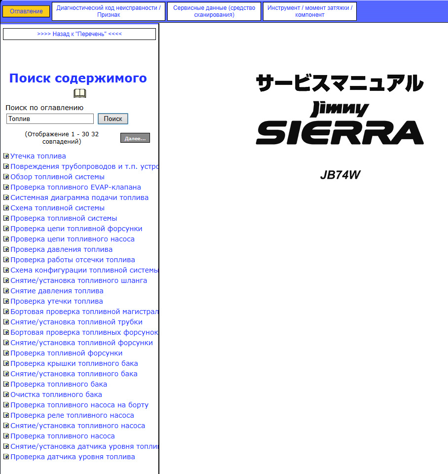 Продаю перевод на русский язык японского сервисного диска Jimny Sierra (3BA-JB74W) правый руль 2018–2022 г.в. Работает контекстный поиск на русском, поиск по коду DTC. Оболочка диска в формате HTML предназначена для ПК Windows версии 8.1 и выше, требуется обычный браузер, объем архива для скачивания 340 Мб. из хранилища OneDrive