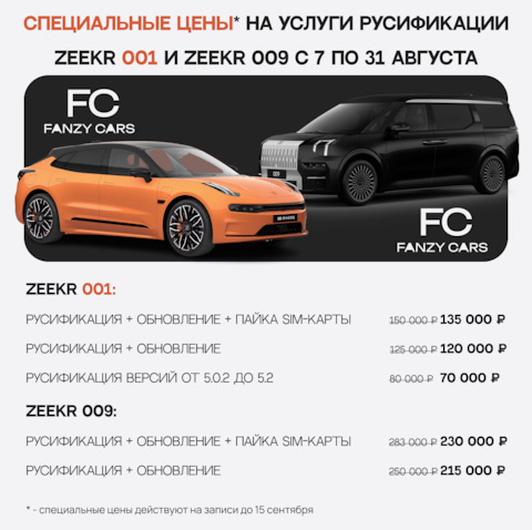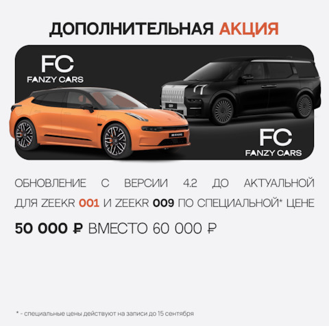 Обновление с версии 4.2 до актуальной для Zeekr 001 и Zeekr 009 по специальной цене 50 000 ₽ вместо 60 000 ₽
