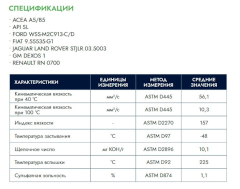 Качественное масло!Заметно уменьшение шума при работе двигателя, мне нравится