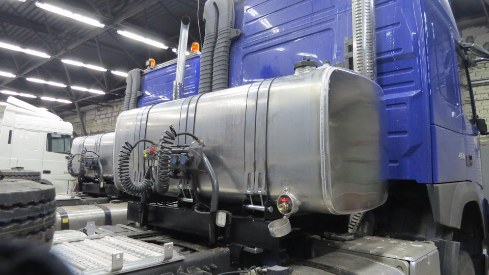 Дополнительный топливный бак комплектуется всем необходимым. Также возможна изготовить топливный бак за кабиной.