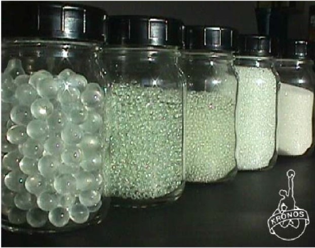 Как иллюстрация — стеклянные шарики разного размера. С уменьшением размера, рассеивание света увеличивается – растет укрывающая способность.