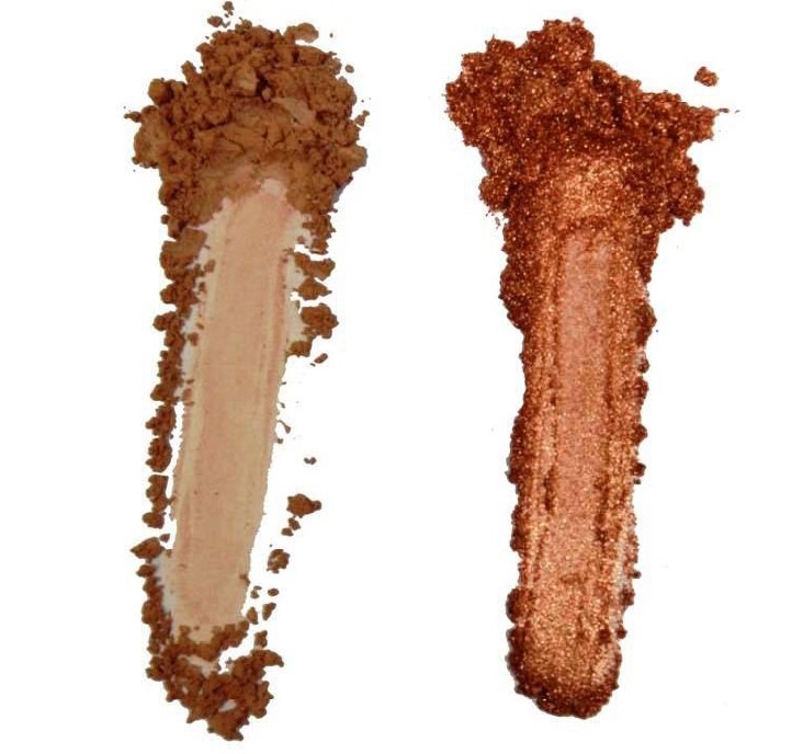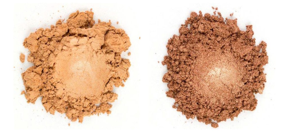 Сферой применения левого варианта пигмента может быть пудра или тональный крем, а в случае правого, например, тени для глаз с блестящим эффектом… Вариантов использования — огромное количество!