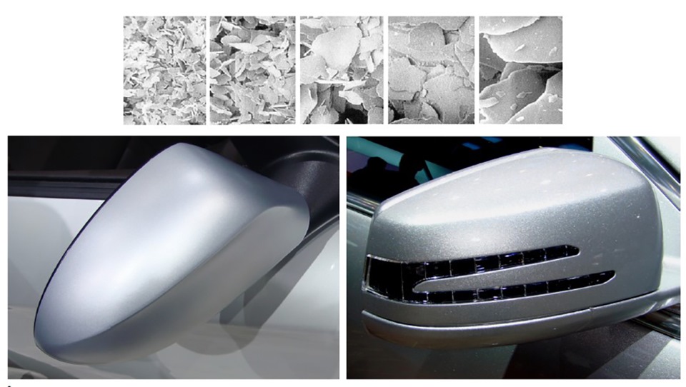 5. В дополнение к вышеперечисленным подложкам, используются хлороксид висмута (Biflair®) – единственный пигмент без субстрата, и алюминий (Meoxal®, PCMxxxx). Чешуйки алюминевого субстрата покрыты оксидом металла, что придает им глубокий и насыщенный блеск.