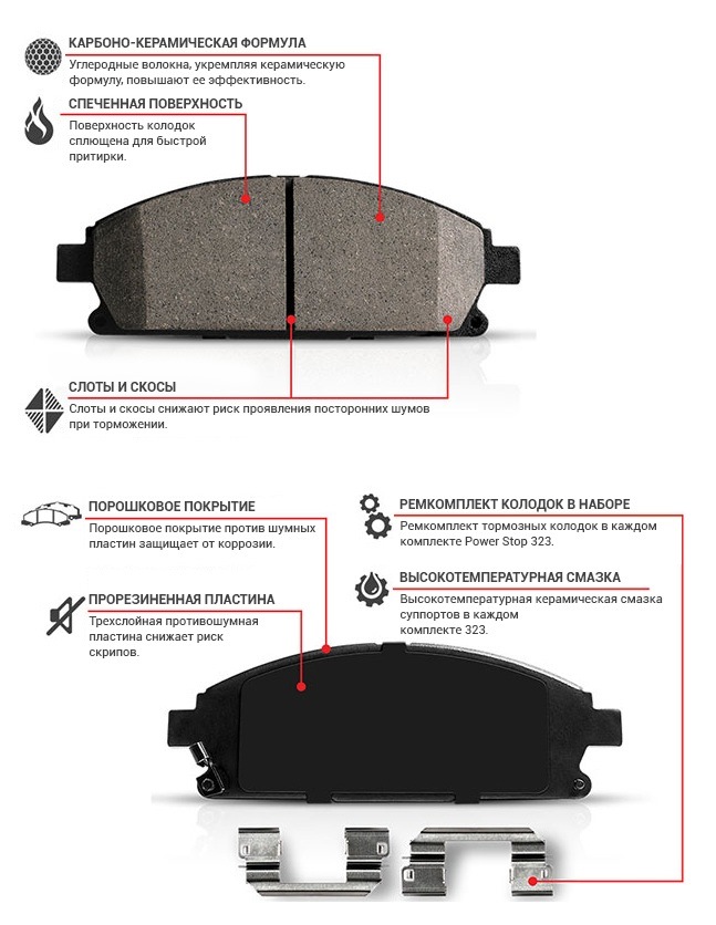Керамические тормозные колодки Power Stop Z16/z17, по сравнению с обычной органикой (а 95% тормозных колодок на европейском рынке именно органические), очень устойчивы к высоким температурам и трению. При этом принадлежат к классу «стрит»: имеют невысокое содержание керамики, а следовательно, не требуют дополнительного прогрева.