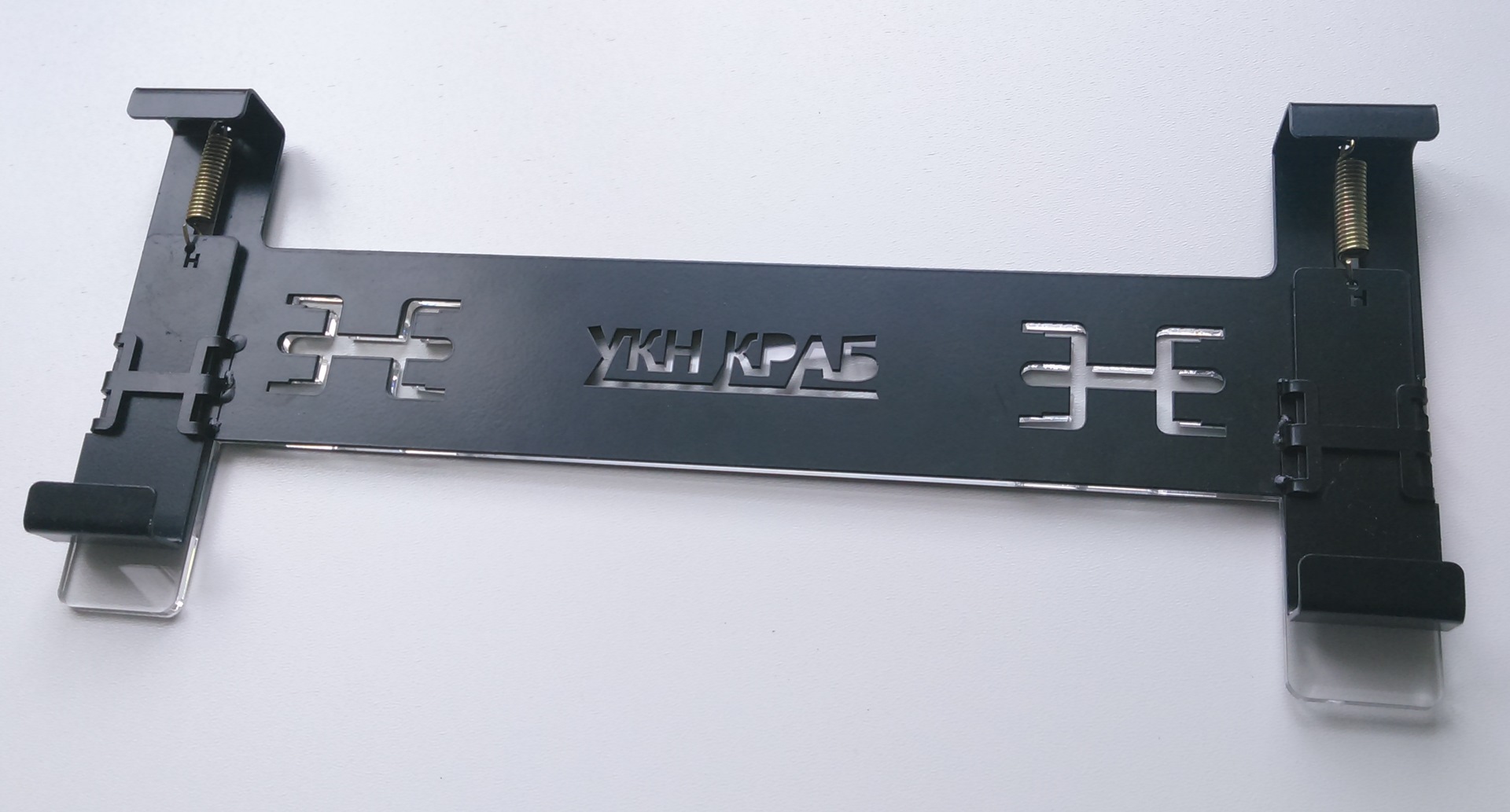 Установка Устройства не требует разборки бампера. Посадочные прорези УКН Краб позволяют крепить Устройство к большинству штатных посадочных мест на автомобиле. Если посадочные места отсутствуют или расположены по стандарту других государств, то УКН Краб крепится на саморезы, как обычная номерная рамка. Процесс установки не занимает много времени и может проводиться самостоятельно по прилагаемой инструкции.
