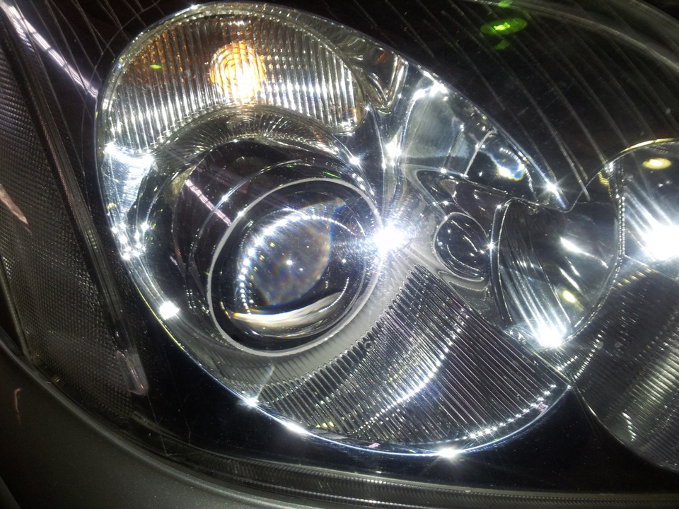 Фотографические способности во мне проснулись после того как я собрал фары, загерметизировал их Новоловским черным герметиком, поставил на место, повесил бампер и отполировал фары "по всей строгости закона" )))