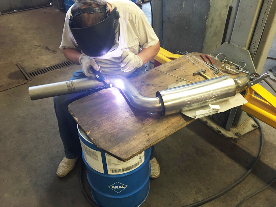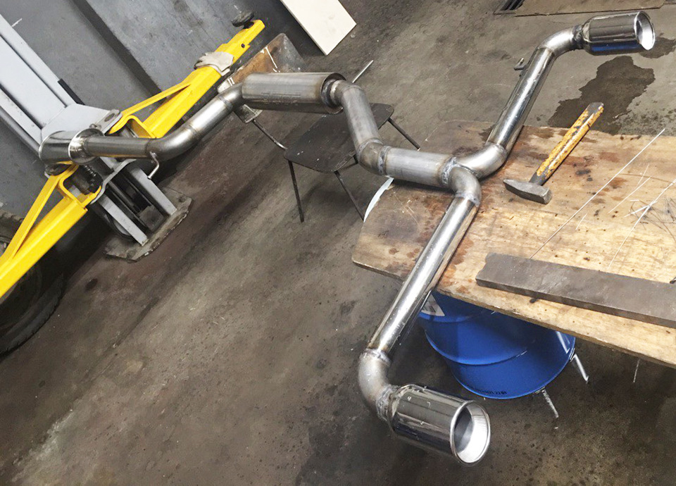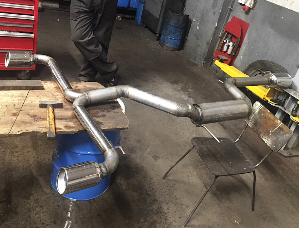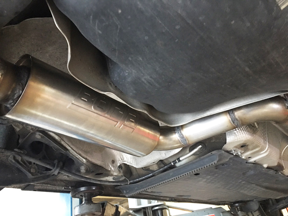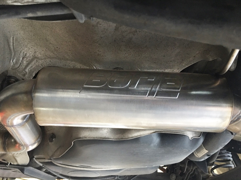 Установка универсального глушителя 40085 и двух полированных насадок 20156. Сделана полностью 3" (76мм) выхлопная система с использованием компонентов Borla. Все сделано из нержавеющей стали и сварено аргоновой сваркой.