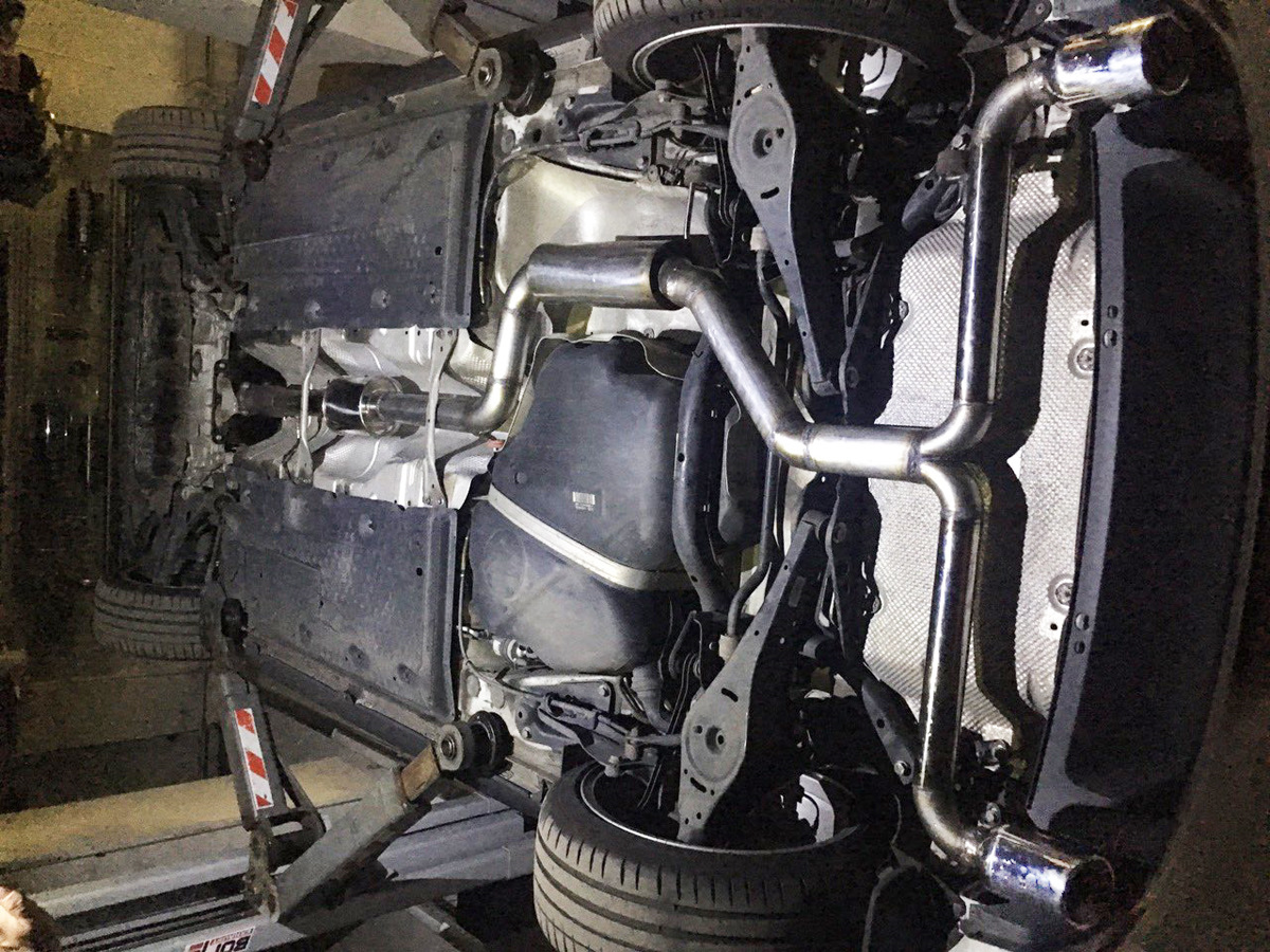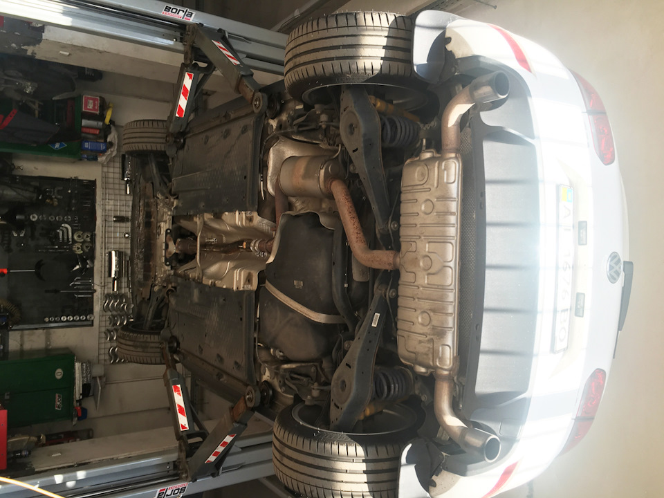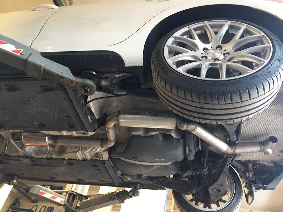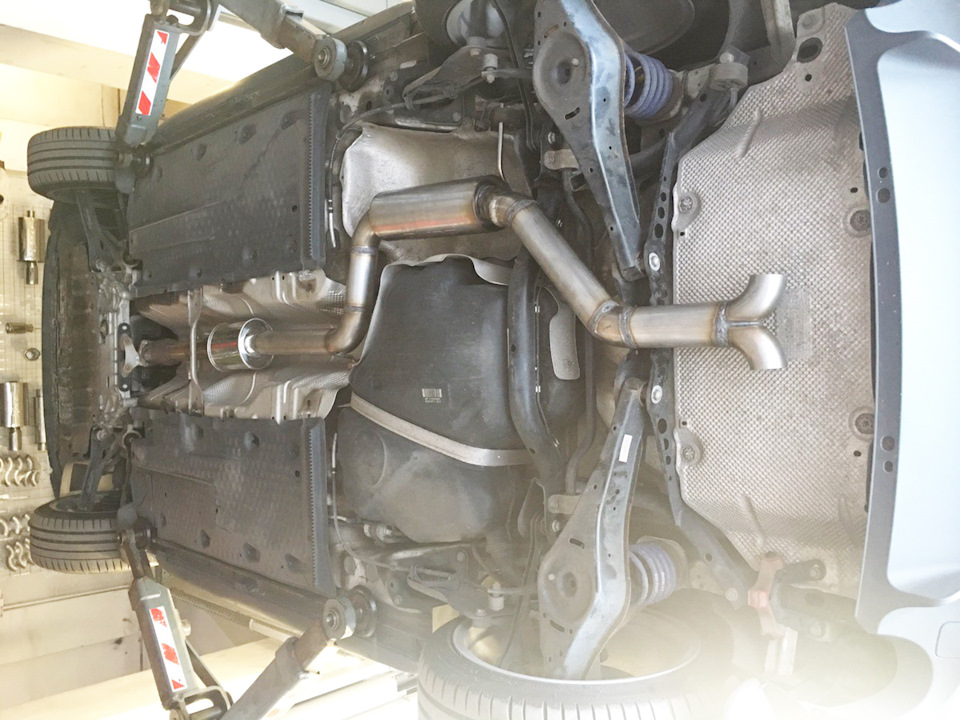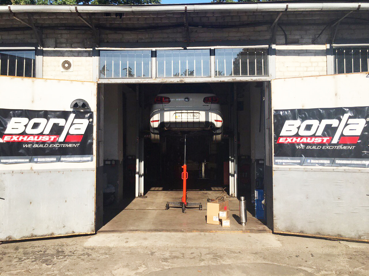 Установка универсального глушителя 40085 и двух полированных насадок 20156. Сделана полностью 3" (76мм) выхлопная система с использованием компонентов Borla. Все сделано из нержавеющей стали и сварено аргоновой сваркой.